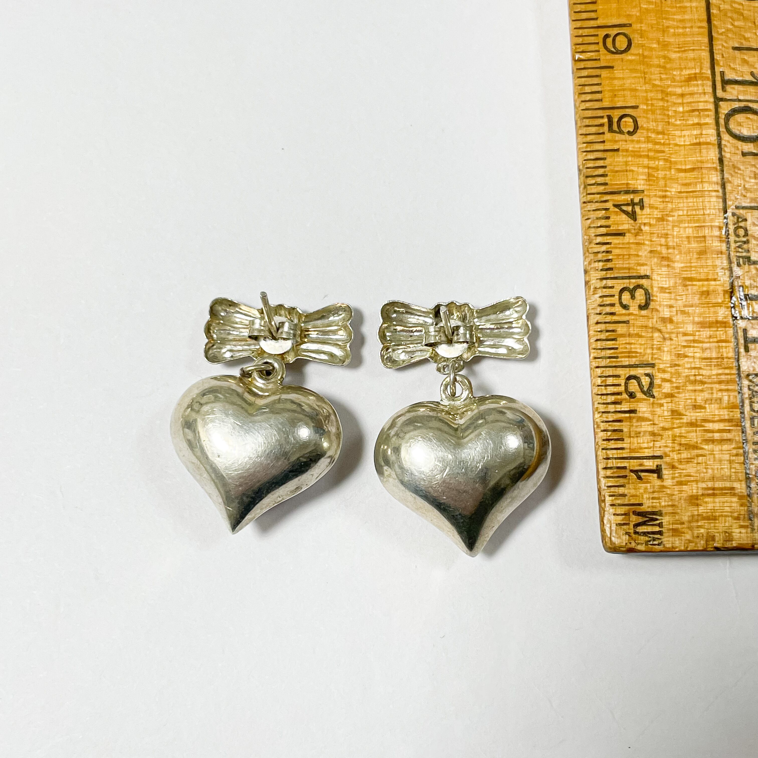 925シルバーのヴィンテージリボン&パフィーハートピアスです。