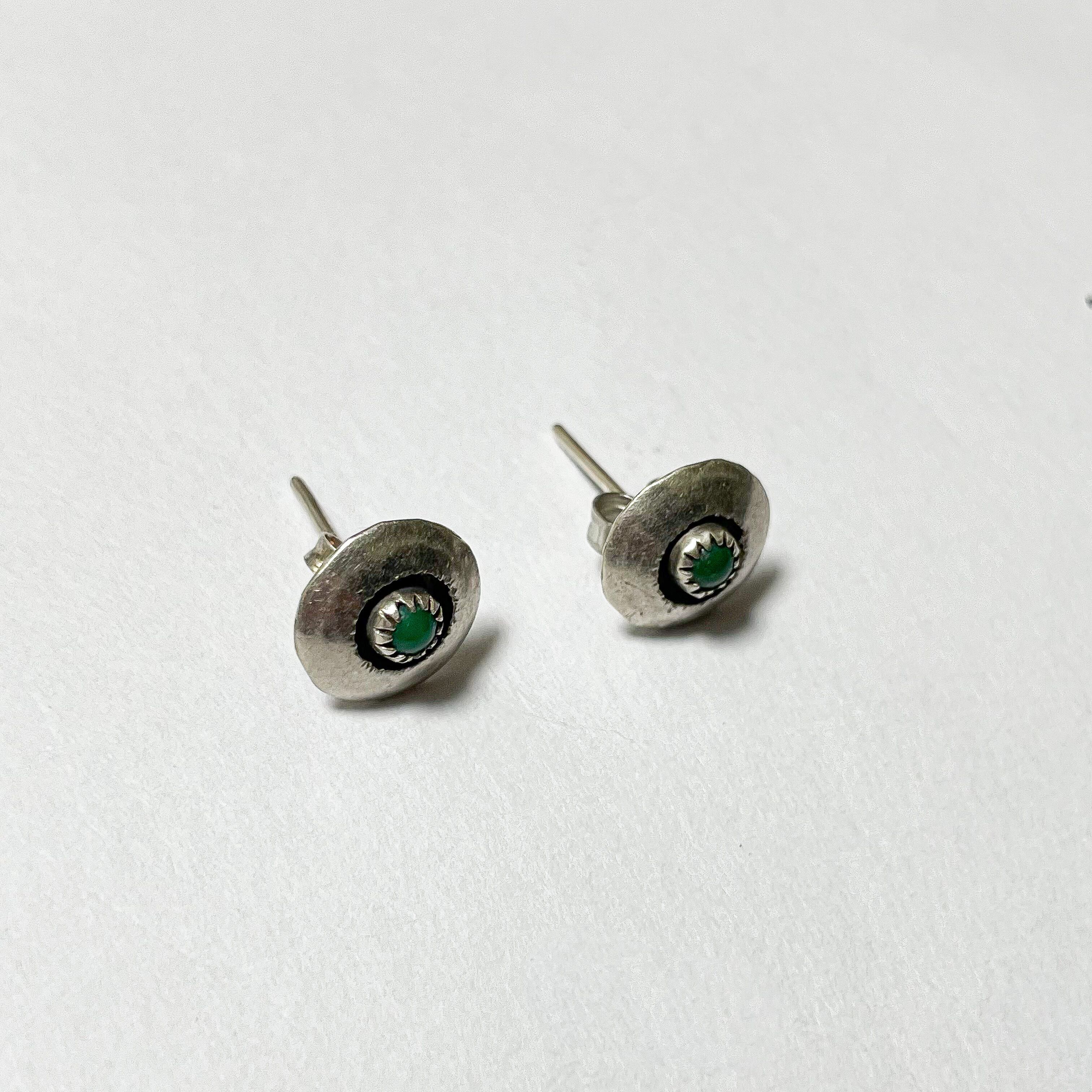 ズニの伝統的なシャドーボックスの凹凸と燻しにより、小さいながらターコイズがしっかり強調されています。