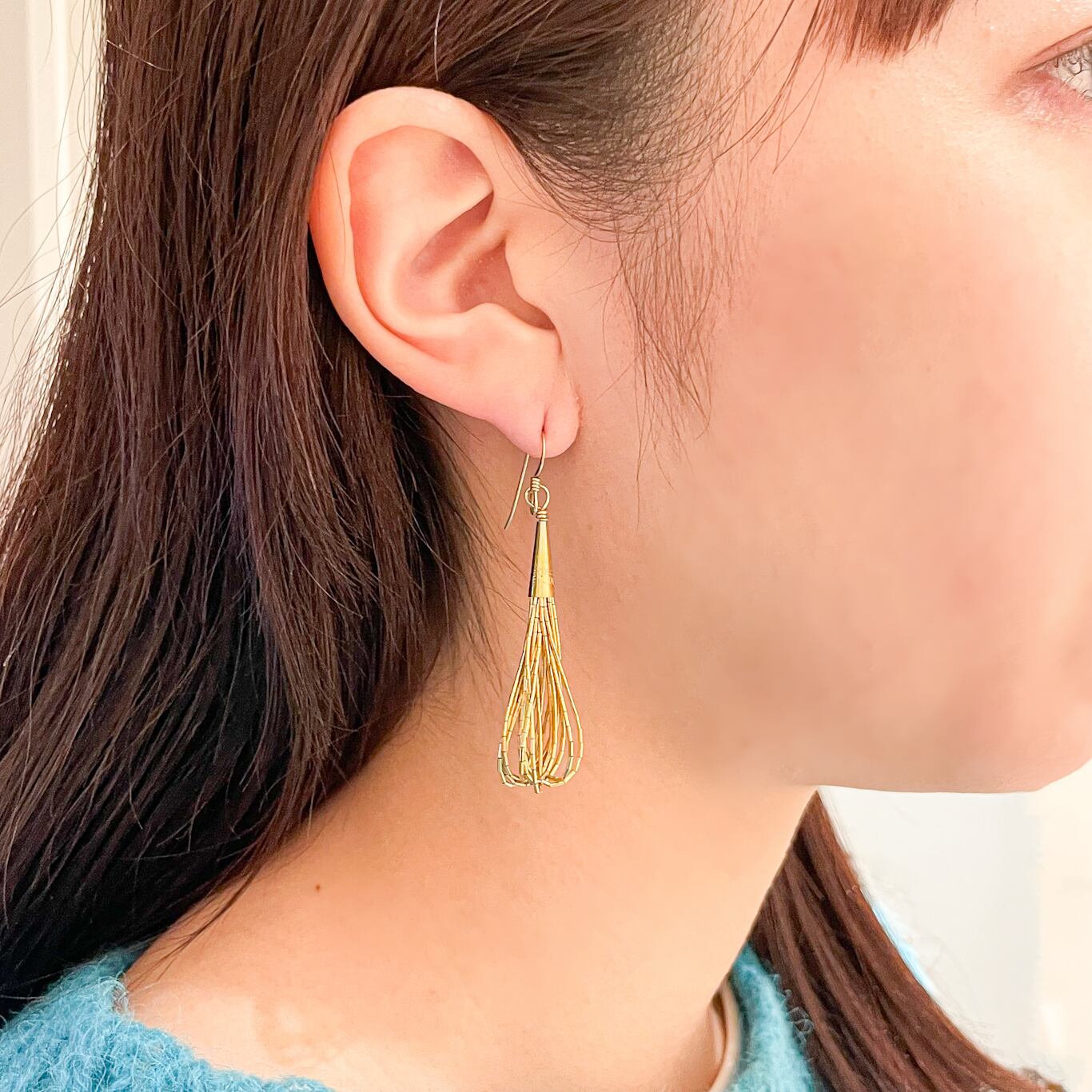 水が流れるような滑らかな輝きと優雅な動きからリキッドシルバービーズと呼ばれる繊細なビーズが、耳元に上品な存在感を与えてくれます。