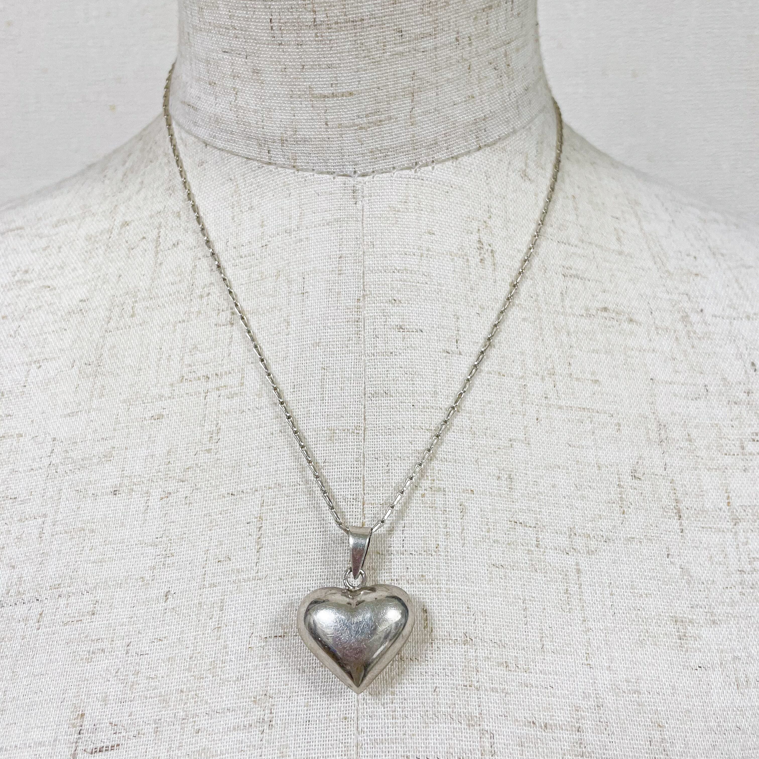 925シルバーのヴィンテージパフィーハートペンダントネックレスです。