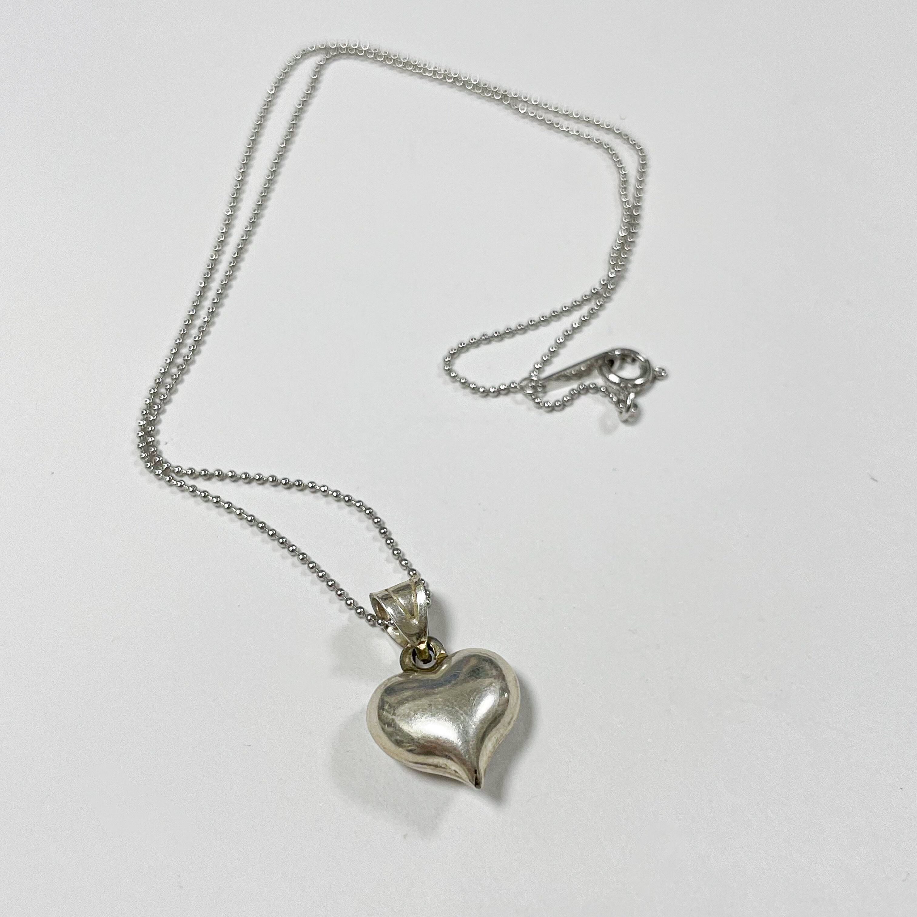 925シルバーのヴィンテージパフィーハートペンダントネックレスです。