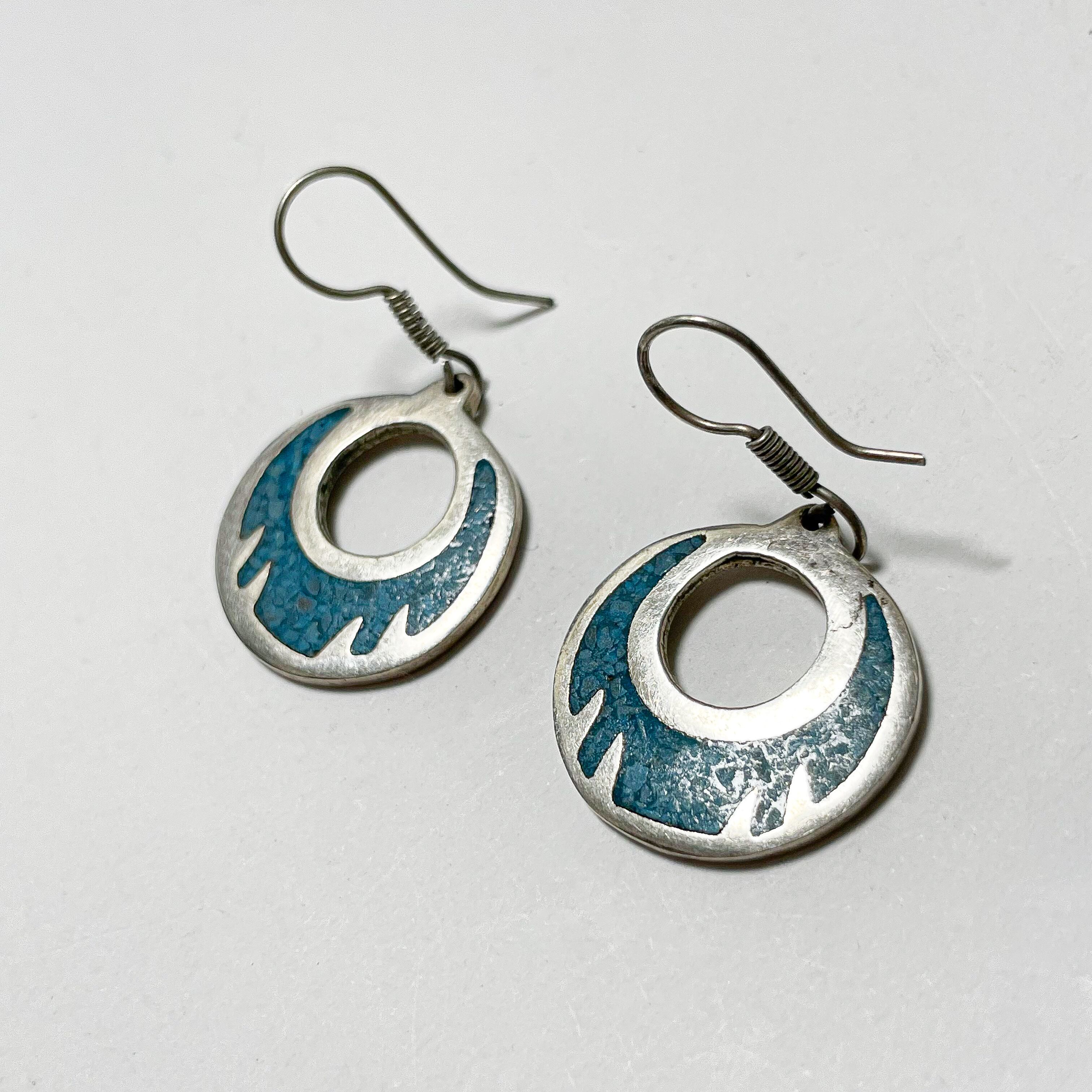 メキシコ製925シルバーとクラッシュターコイズのヴィンテージピアスです。