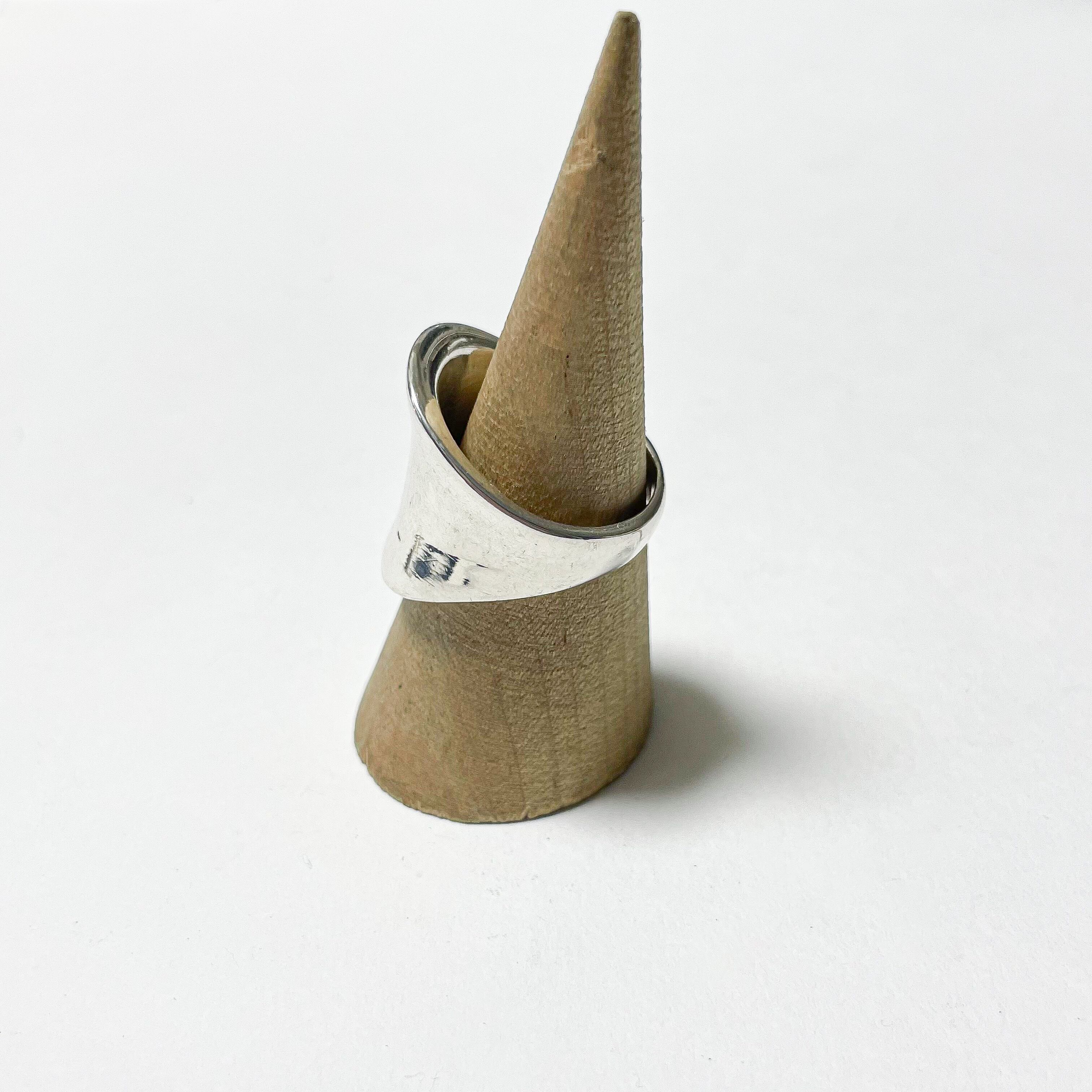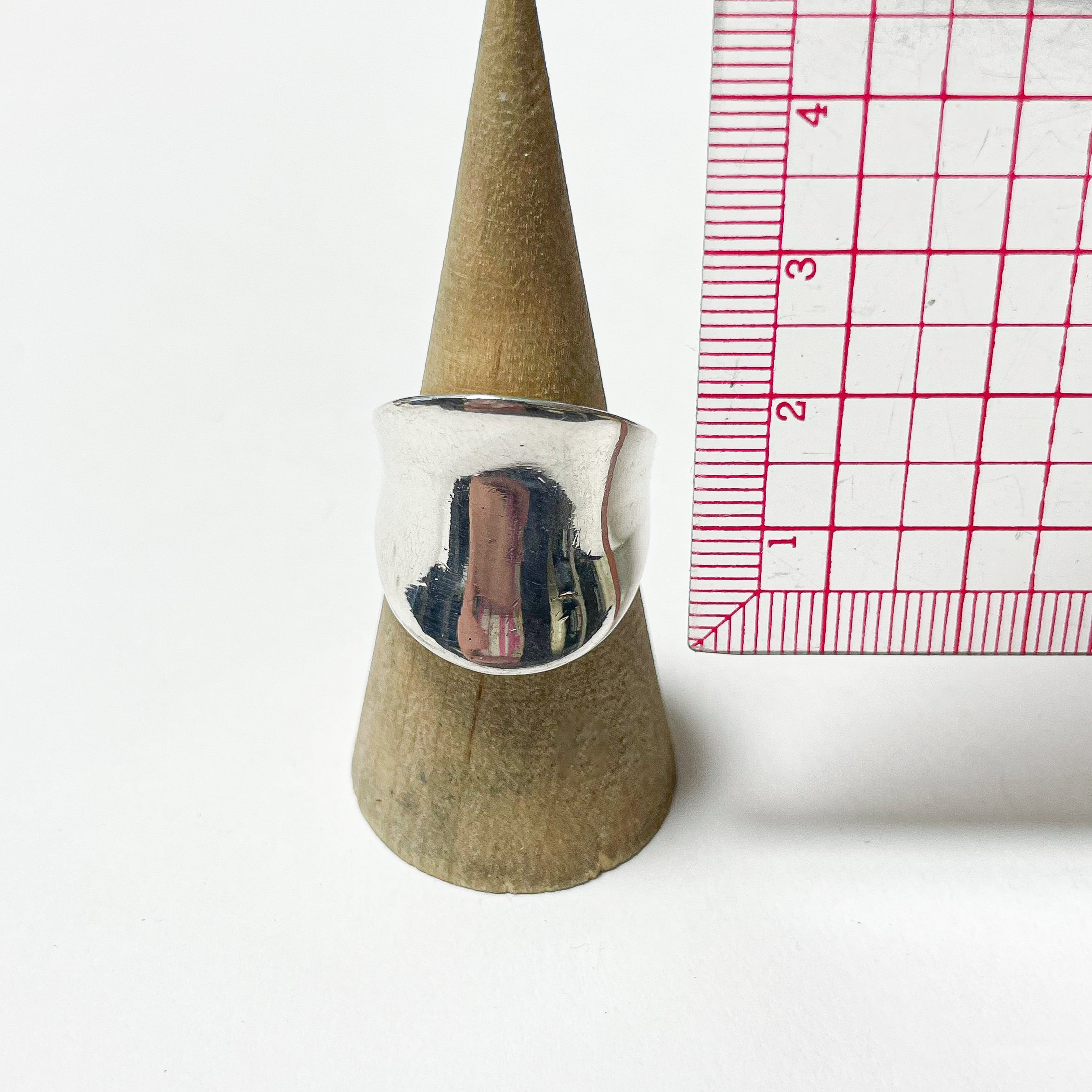 925シルバーのモダニストリングです。 ボリュームがありながらもシンプルな造形で非常に使い勝手が良いです。 刻印なしですが間違いなく925シルバーのもので、ロスのディーラーから仕入れたものになります。 こちらの年代は不明です。 Weight*9.5g Size*約17号 Condition*特に目立つダメージや汚れはなく比較的良い状態です。 あくまで年代物ですので新品のようなものをお求めの方や神経質な方はご購入をお控え下さいませ。