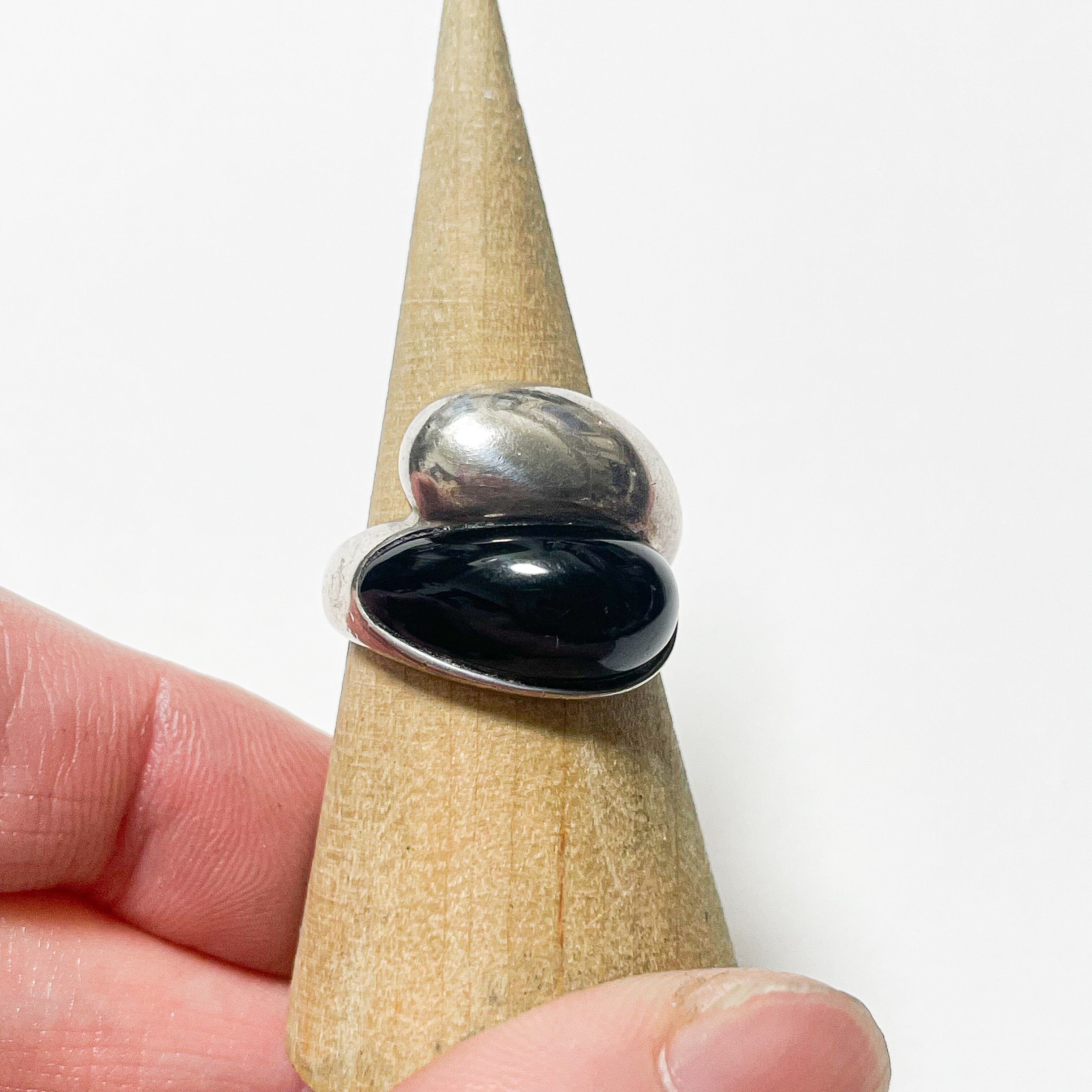 タイ製925シルバーとオニキスのヴィンテージモダニストリングです。