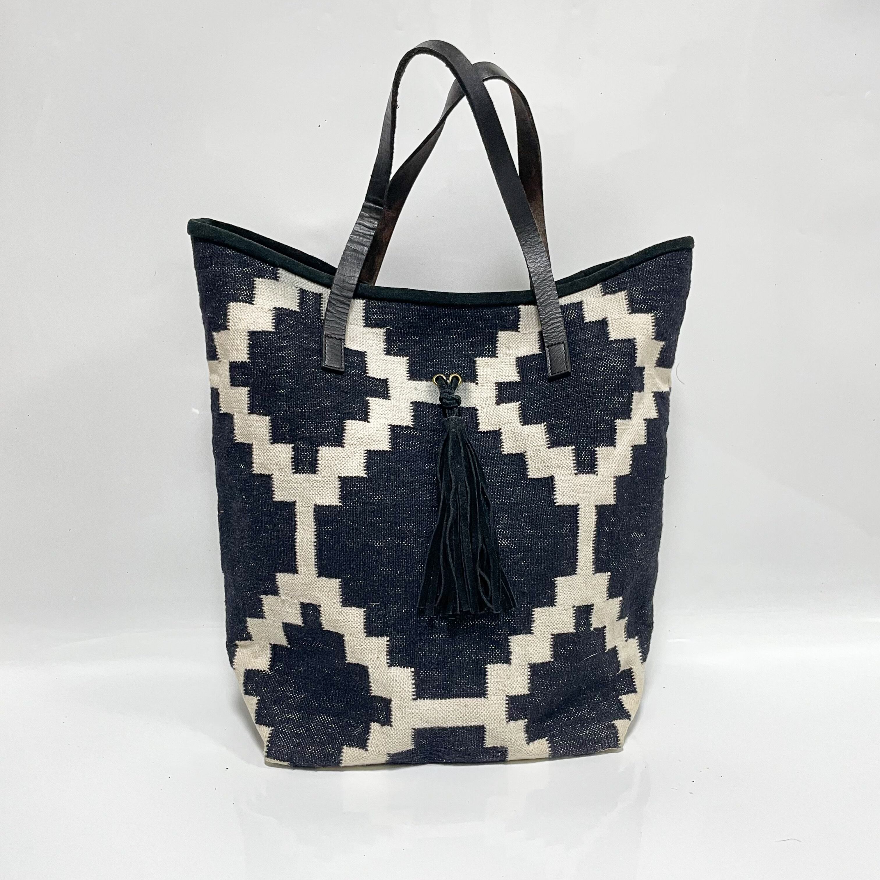 ネイティブ柄のラグ生地で作られたトートバッグです。