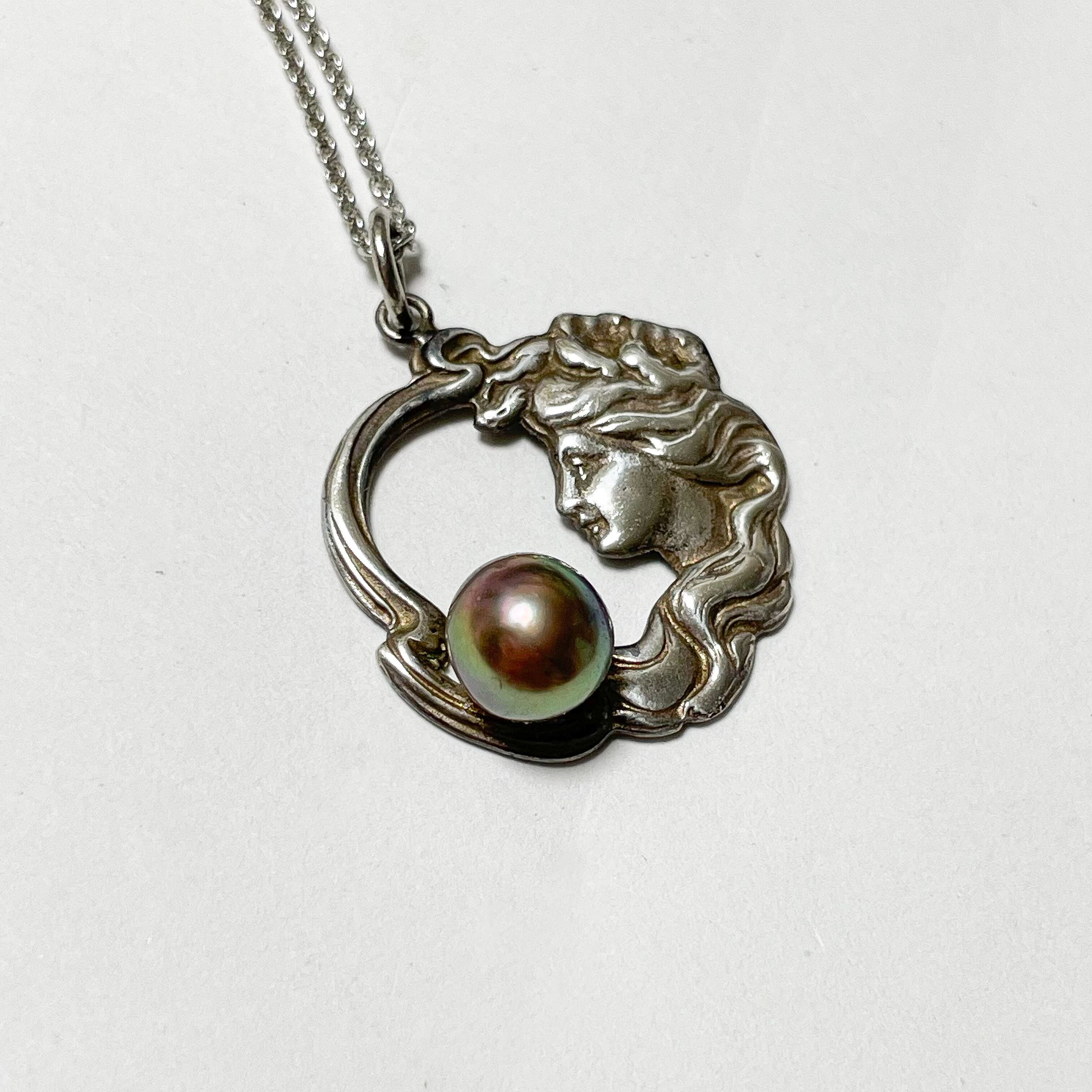 スターリングシルバーのヴィンテージアールヌーボーリバイバルペンダントネックレスです。