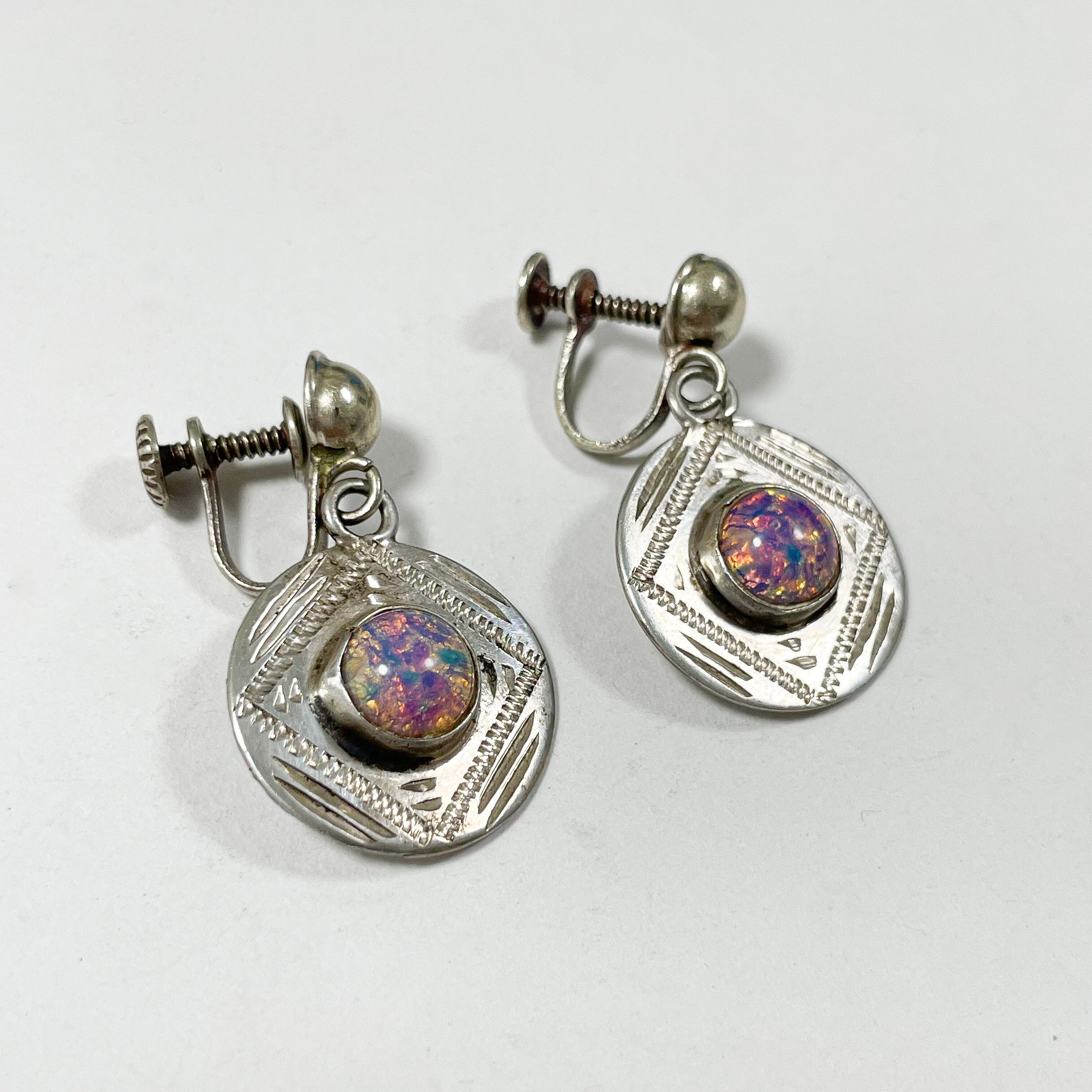 メキシコ製925シルバーヴィンテージファイヤーオパールイヤリングです。