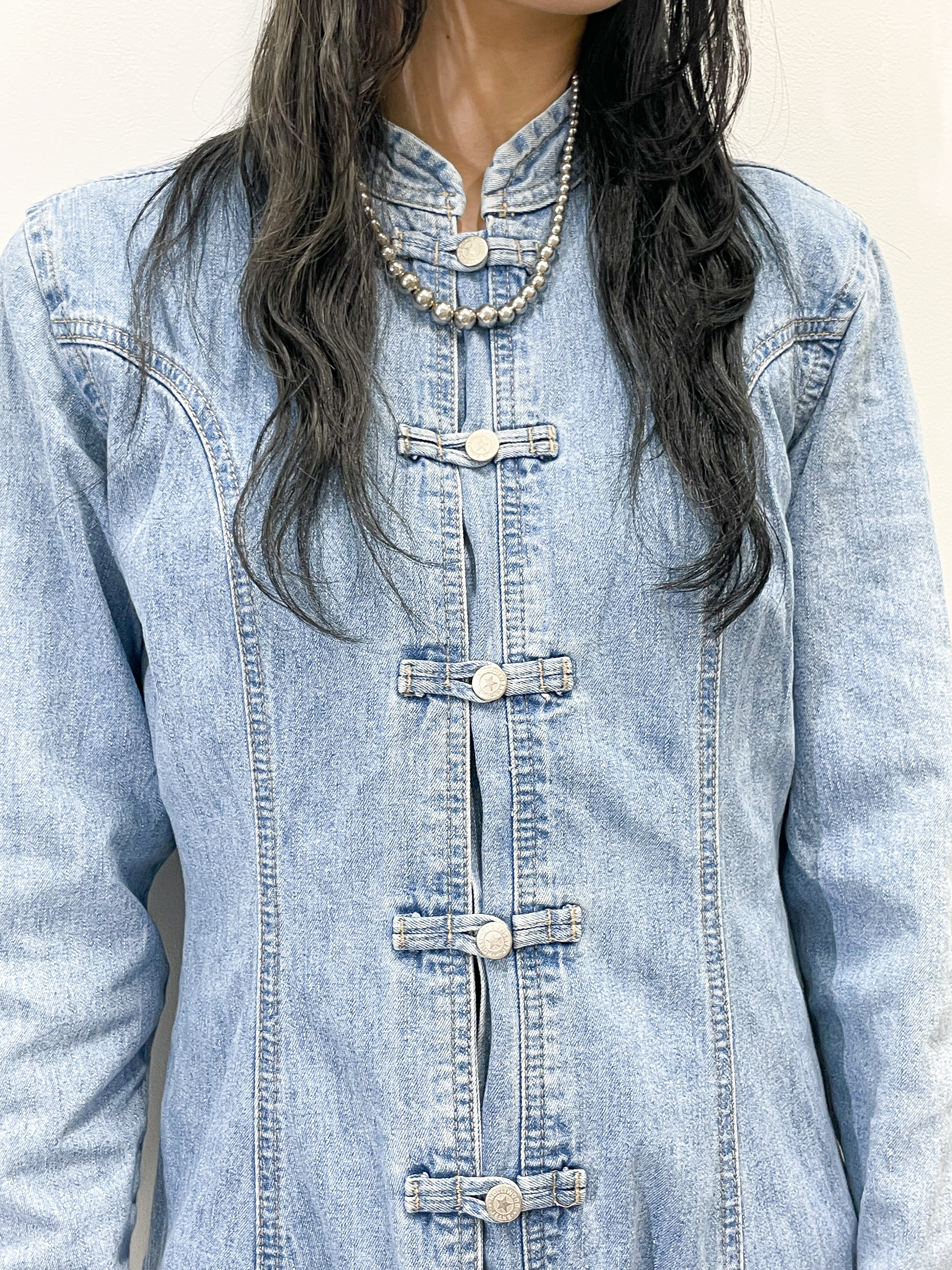 スタンドカラーとチャイナのシャツの様なボタンのデザインも可愛いです。