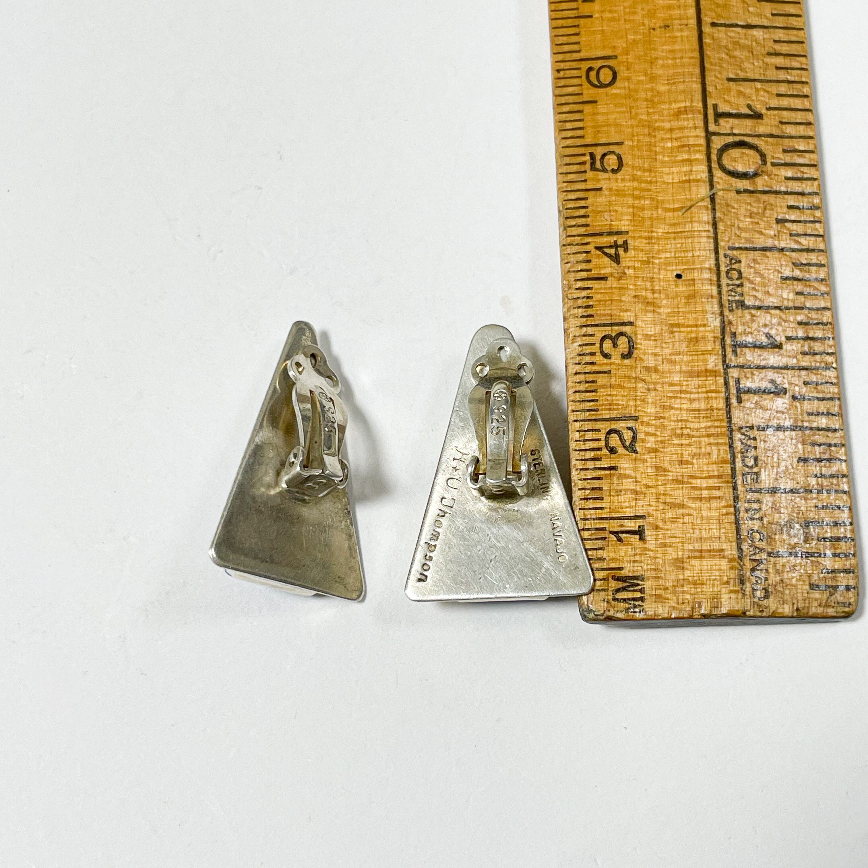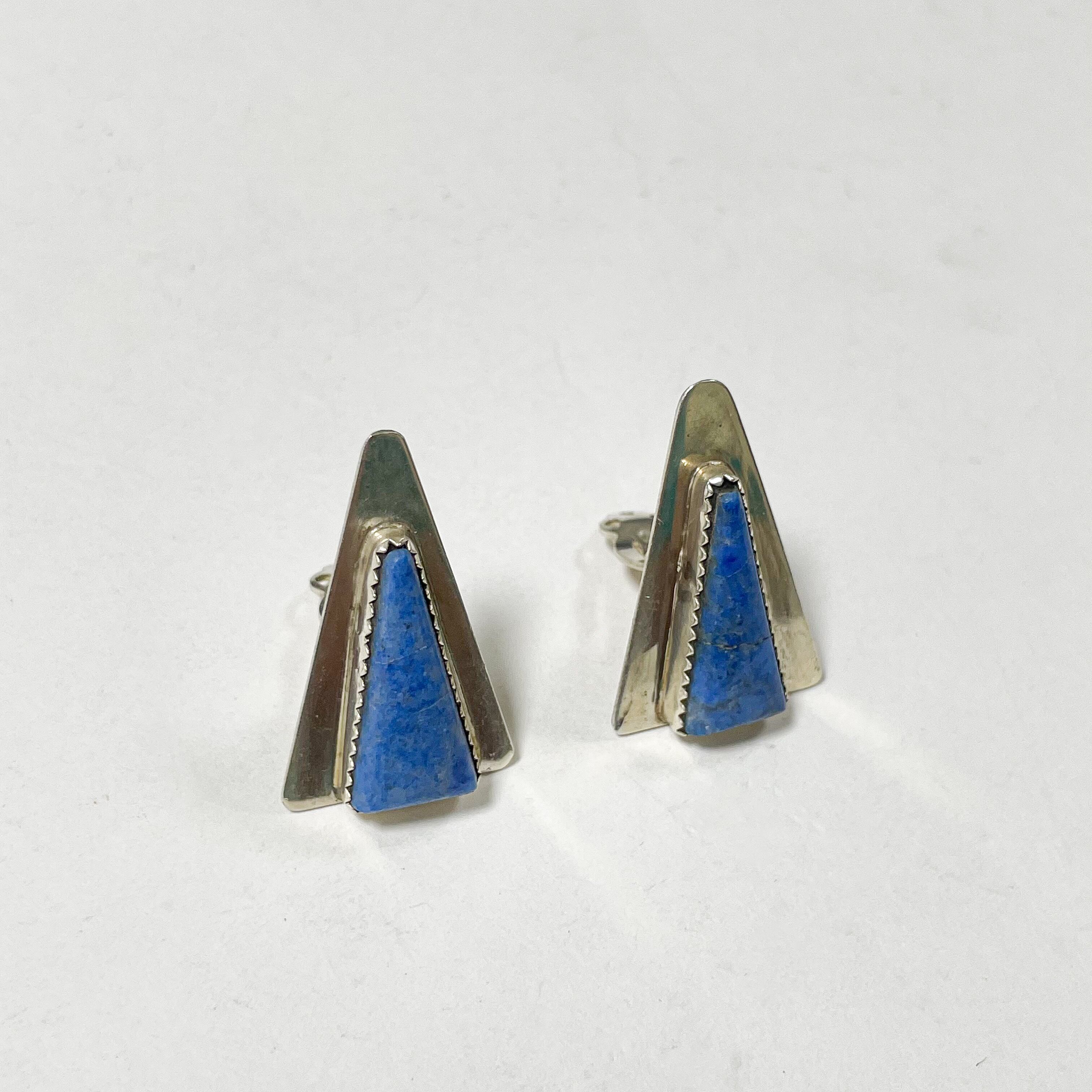 ナバホのアーティスト、Herb & Veronica Thompsonによるスターリングシルバーとデニムラピスのヴィンテージイヤリングです。