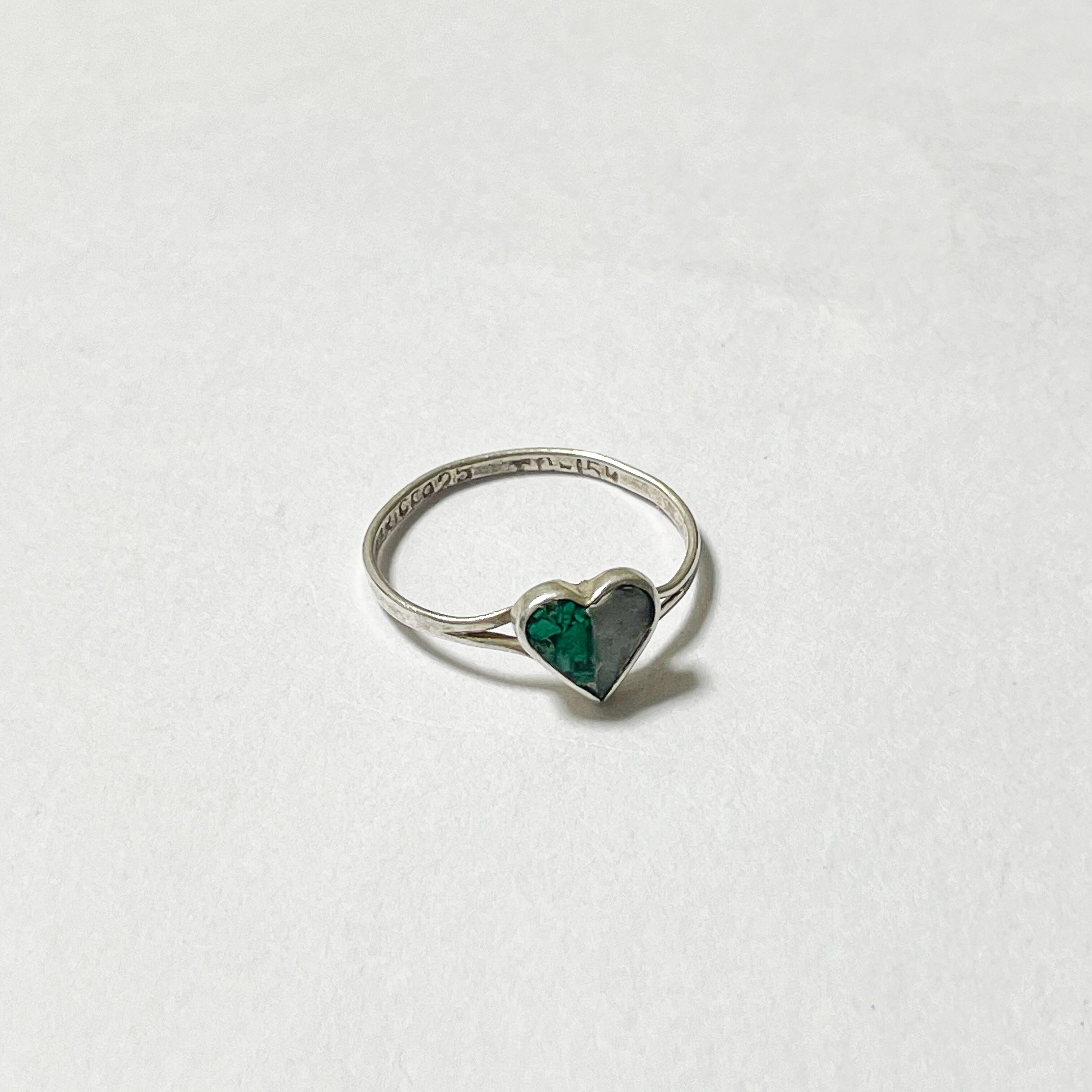 ハートの左半分はターコイズのチップが樹脂で固められたもの、そして右半分は樹脂らしき物がベゼルセットされています。