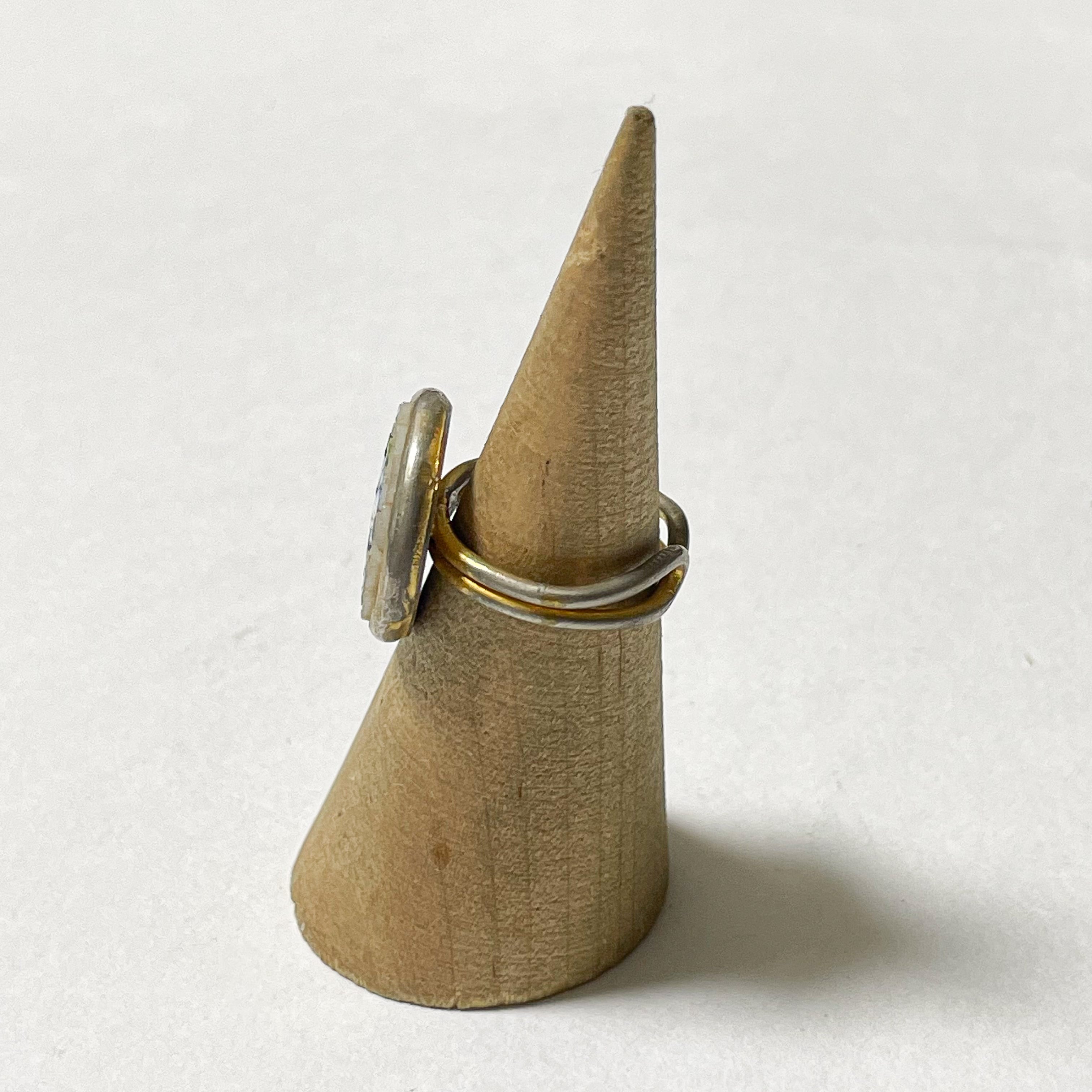 手作りのガラスパーツをびっしりと嵌め込み図柄を作る、イタリアの伝統工芸マイクロモザイクによる美しいヴィンテージリングです。