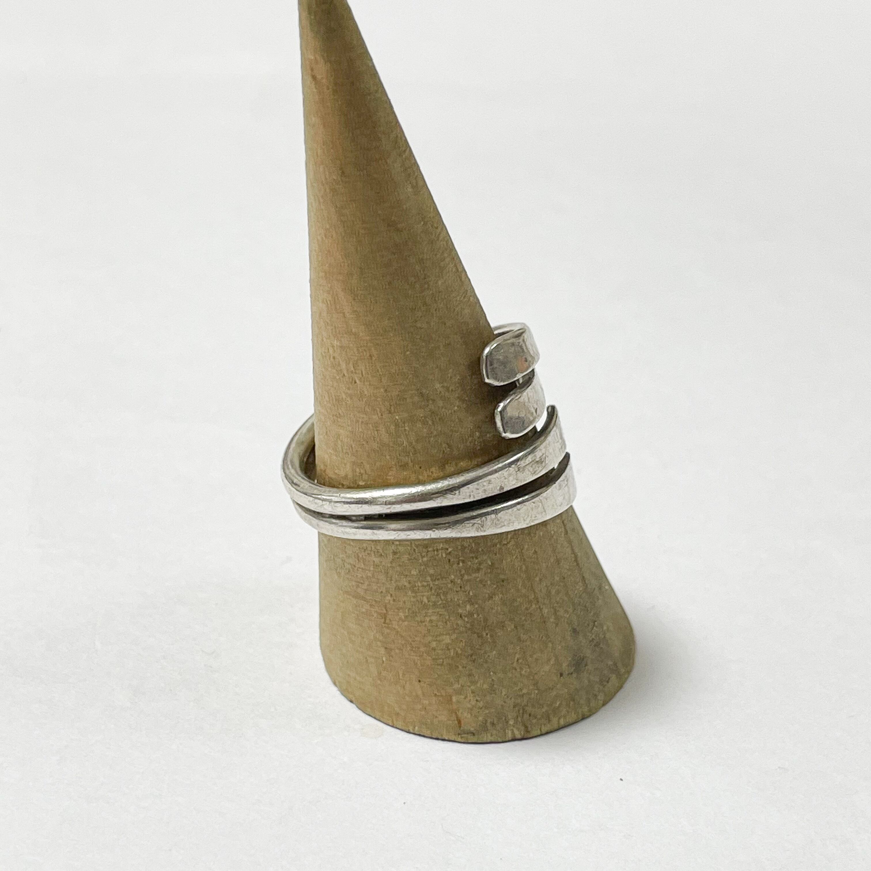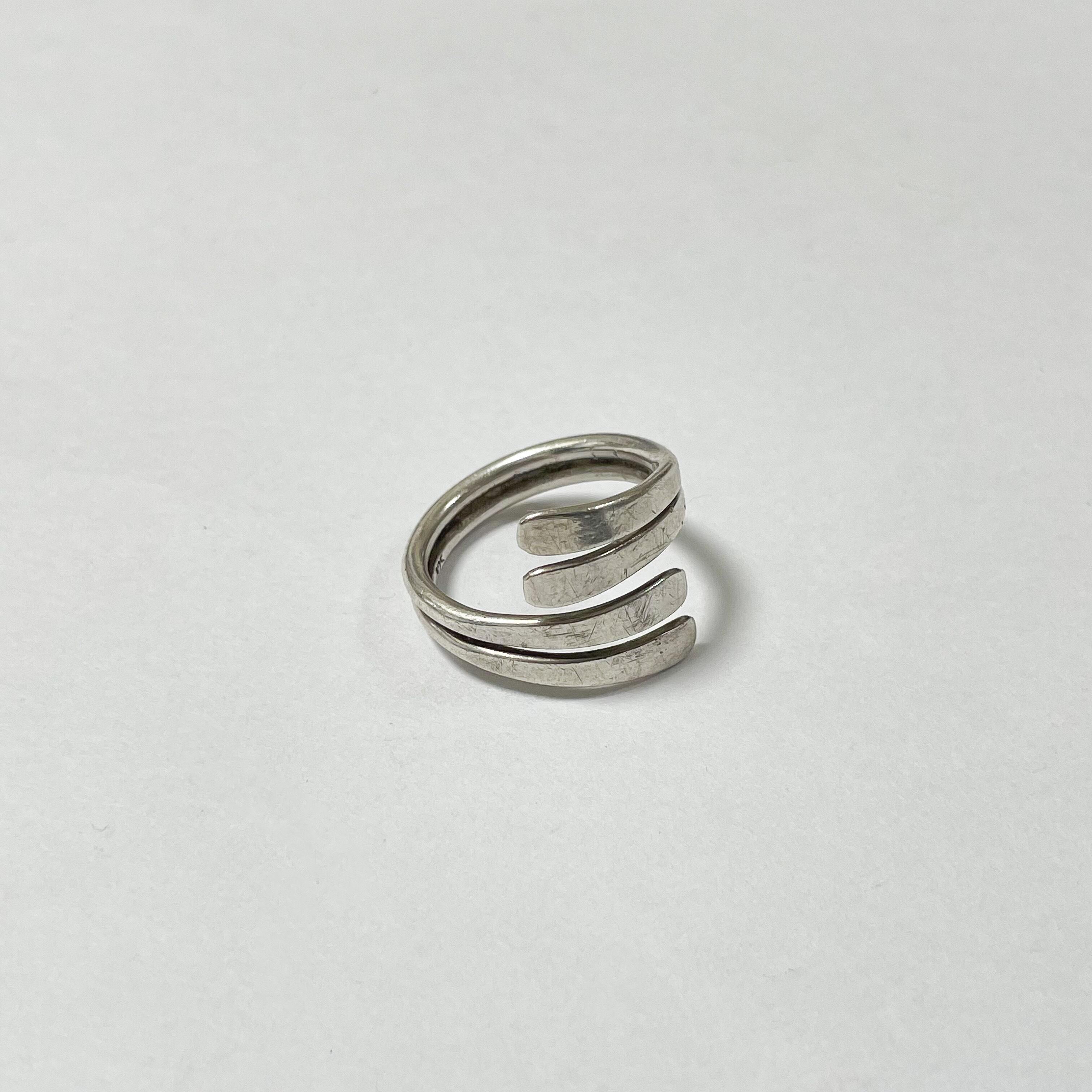 メキシコ製925シルバーのヴィンテージラップリングです。 人気のモダンなラップデザインで間違いないやつです。 裏に925の刻印が確認できます。 MEXICOの刻印なしですがメキシコのものです。 推定80's〜のお品です。 Weight*約5.9g Size*約21号 Condition*特に目立つダメージや汚れはございません。 あくまで年代物ですので新品のような物をお求めの方や神経質な方はご購入をお控えくださいませ。