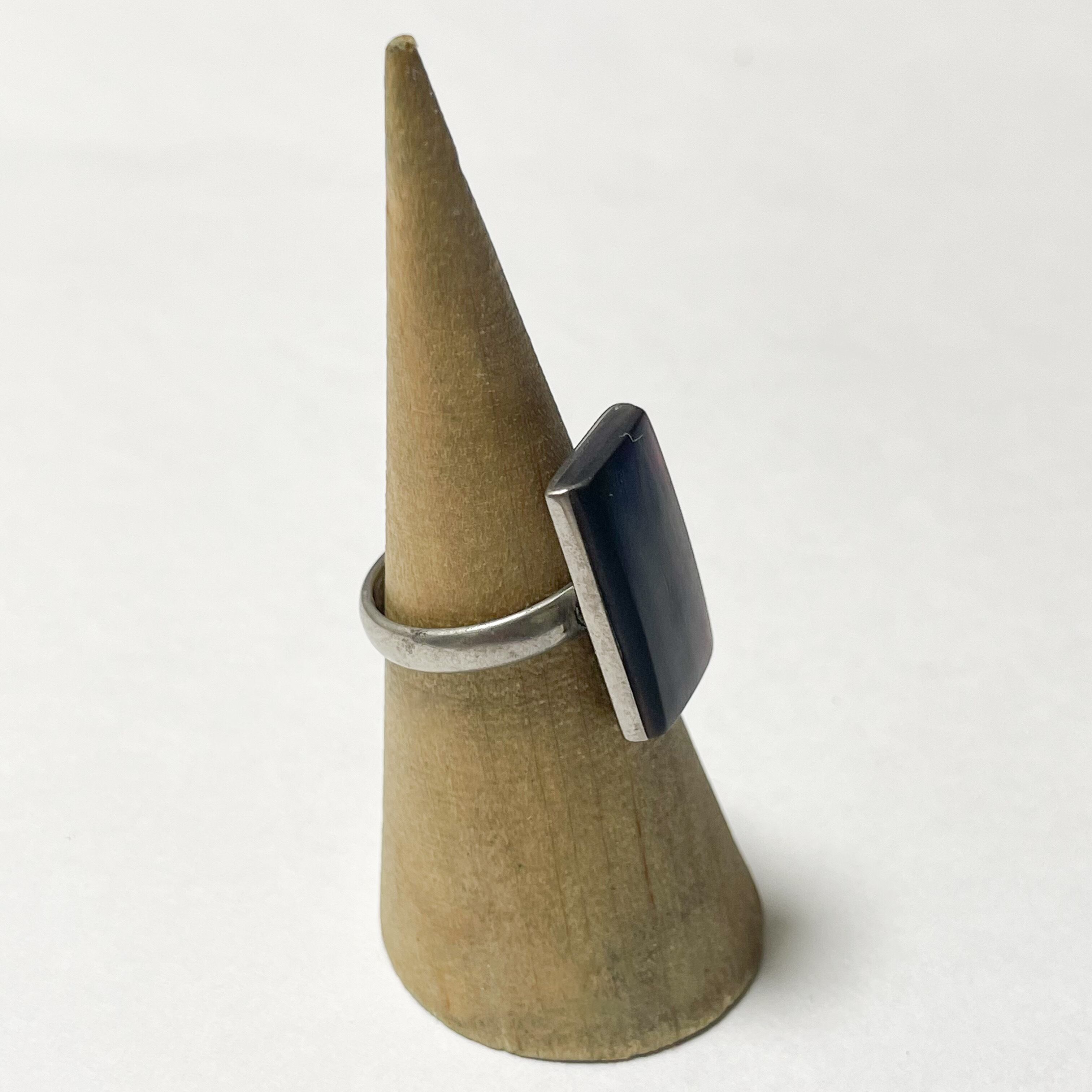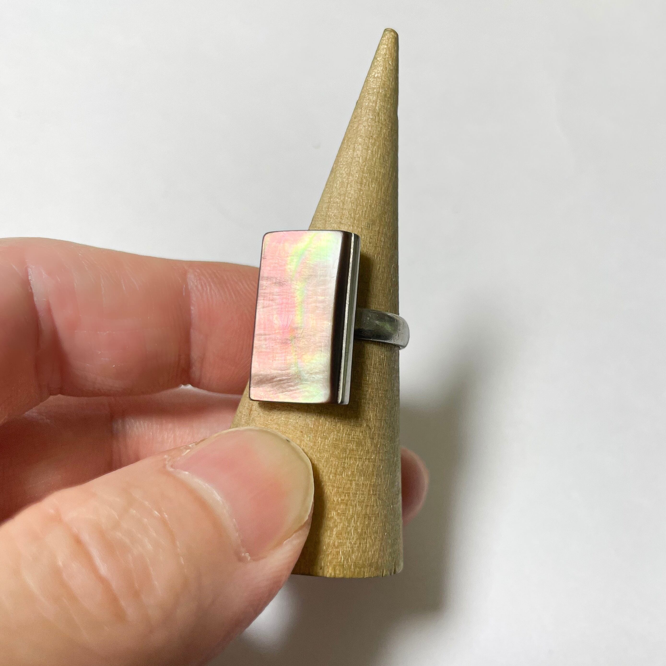 スクエア型の黒蝶貝がセットされた非常にシンプルでクセのないデザインです。