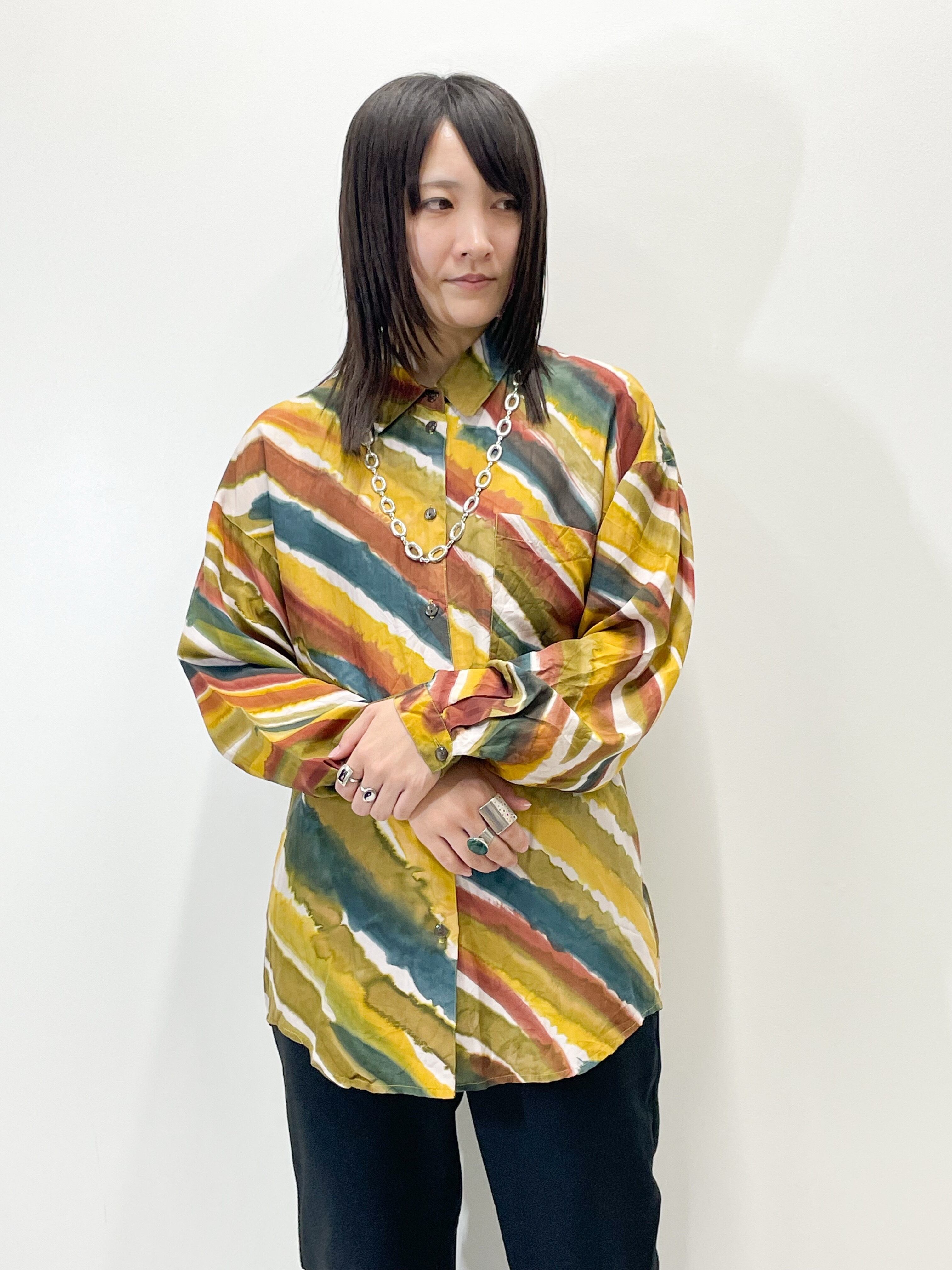 恐らく絞り染めのように染めている生地で、ストライプの色の重なりや滲み具合が可愛いです。