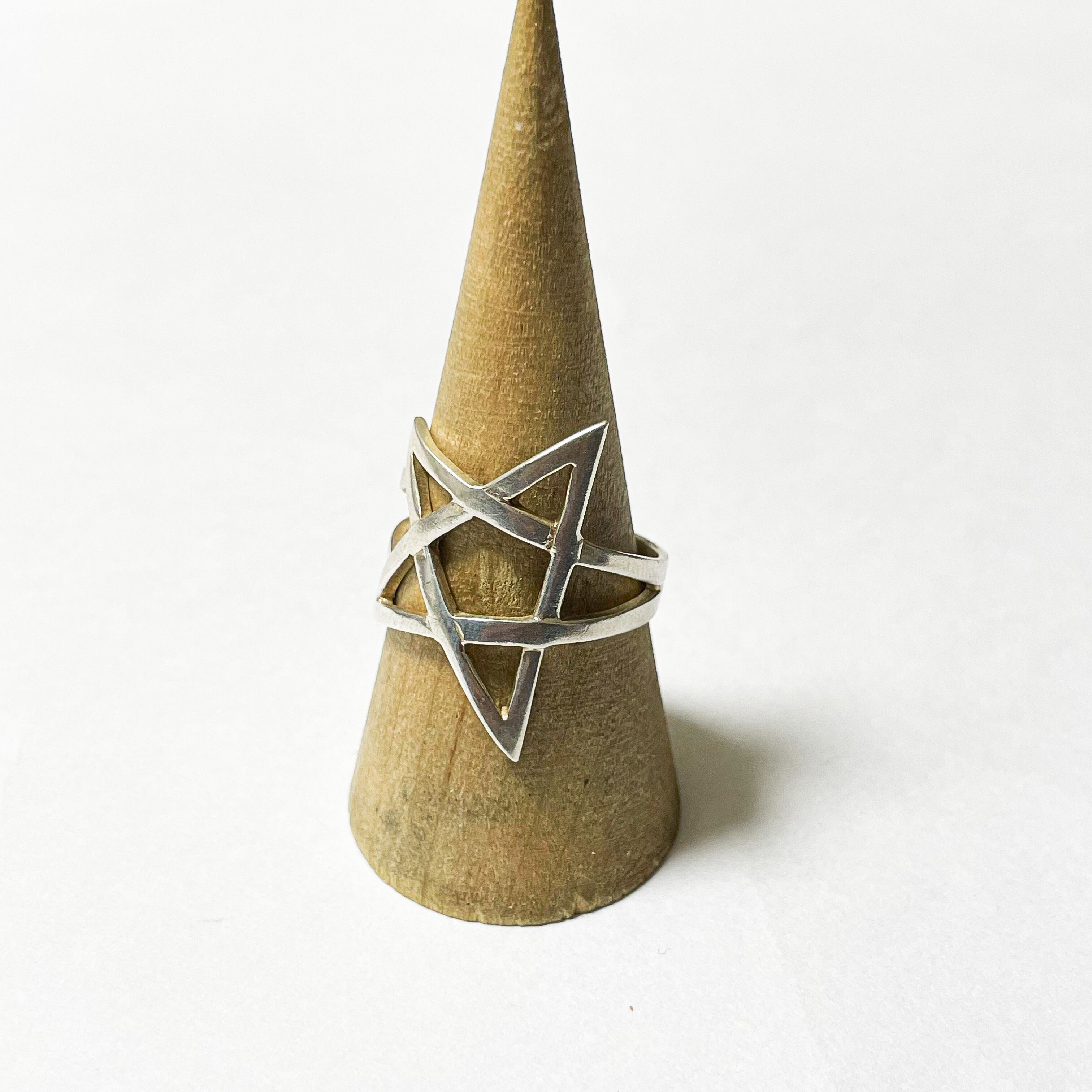 ハンガリー製925シルバーの五芒星リングです。 スターデザインのリングは多数あれど、こちらはモダンでイカしてデザインです。 裏にハンガリーでら2006〜2016年まで使われていた925シルバーのホールマークが確認できます。 Weight*約4.1g Size*約22号 Condition*特に目立つダメージや汚れはなく良い状態です。 あくまで年代物ですので神経質な方や新品の様なものをお求めの方はご購入をお控え下さいませ。