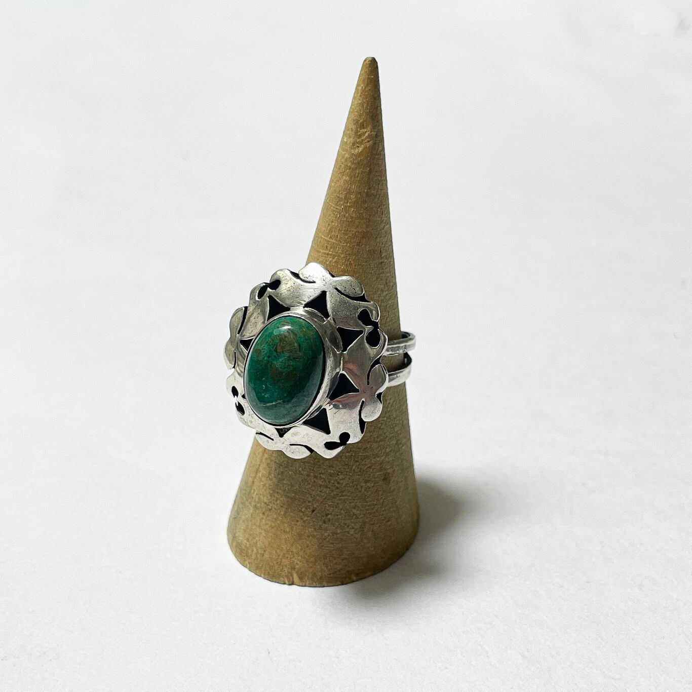 エイラットストーンがセットされたイスラエル製925シルバーのヴィンテージリングです。