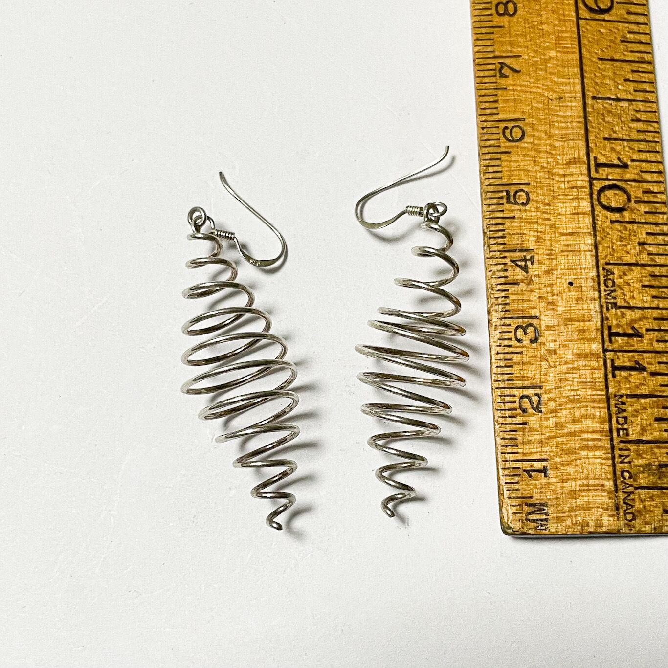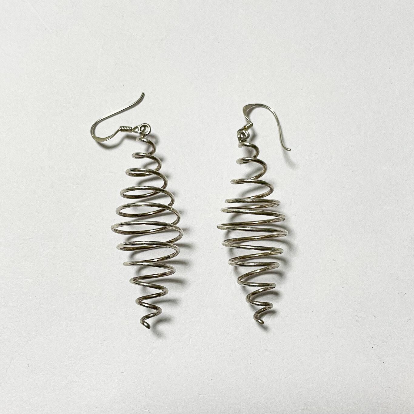 925シルバーのコイルピアスです。 コイル状のデザインが個性的で可愛いです。 フック部分に925の刻印が確認できます。 コイル部分も925シルバーです。 こちらハンガリーの蚤の市で見つけたものですが、恐らく近年ものだと思われます。 Weight*約5.2g Size*画像にてご確認下さい。 Condition*特に目立つダメージや汚れはなく良い状態です。 あくまで年代物ですので神経質な方や新品の様なものをお求めの方はご購入をお控え下さいませ。