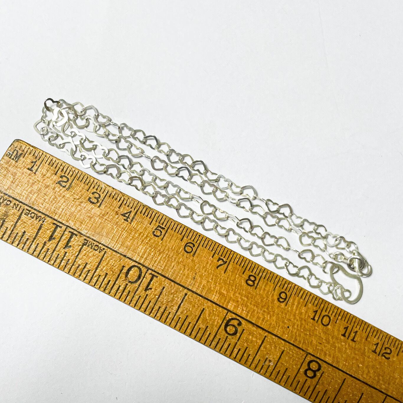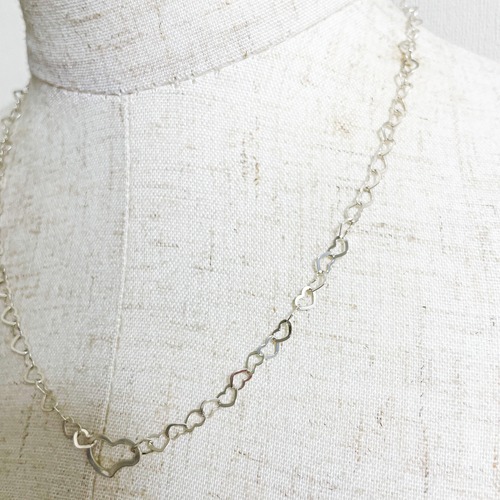 イタリア製925シルバーのヴィンテージハートチェーンネックレスです。 小さなハートが沢山連なったとっても可愛い人気のチェーンです。 留め具付近に925とITALYの刻印が確認できます。 こちらは80's〜90's頃のヴィンテージです。 Weight*約3.4g Size*全長約44cm Condition*特に目立つダメージや汚れはなく良い状態です。 あくまで年代物ですので神経質な方や新品の様なものをお求めの方はご購入をお控え下さいませ。