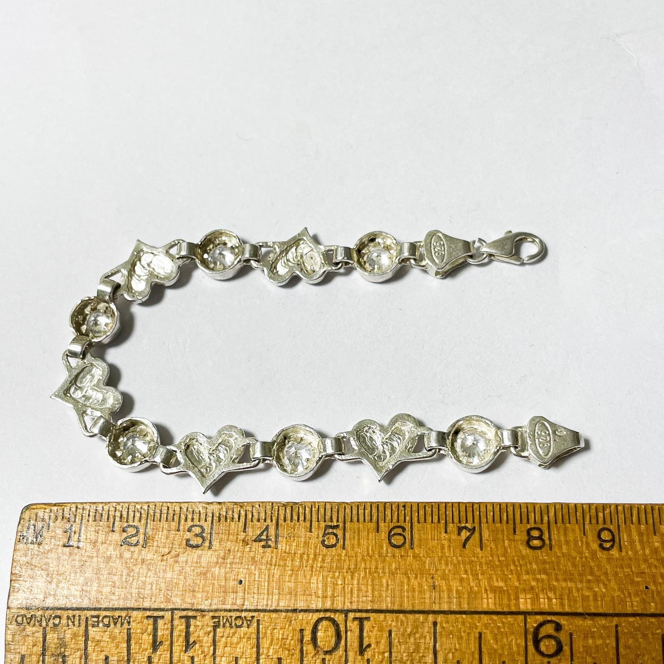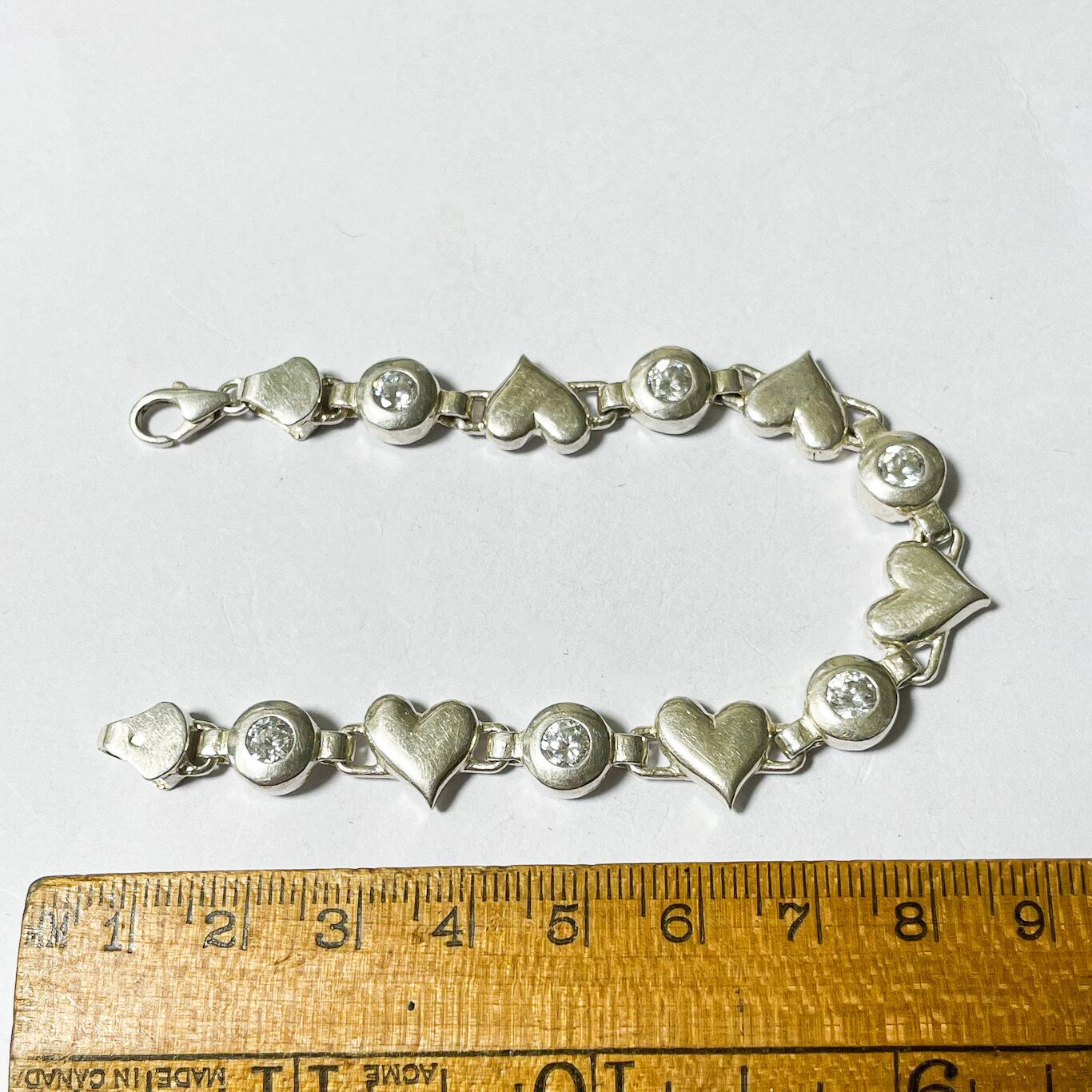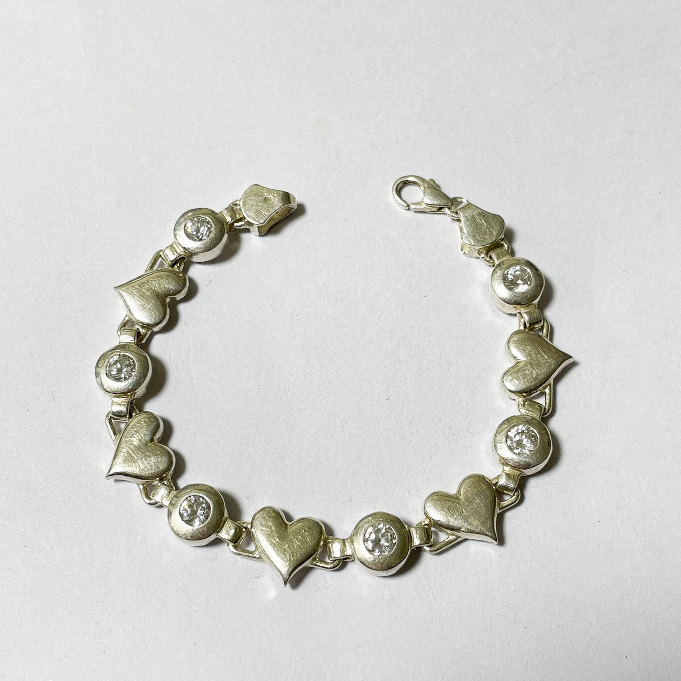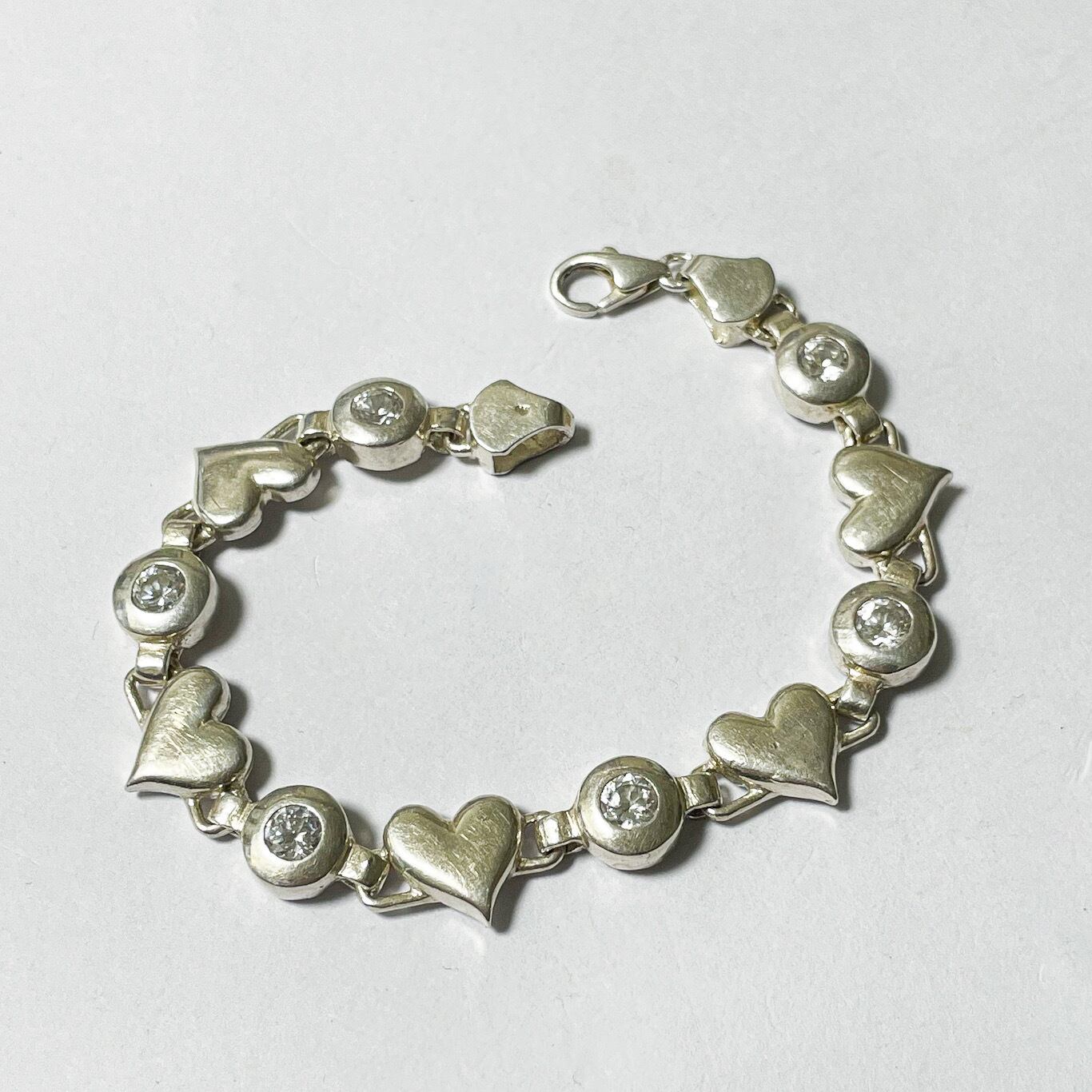 ハンガリー製925シルバーのハートとビジューのリンクブレスレットです。