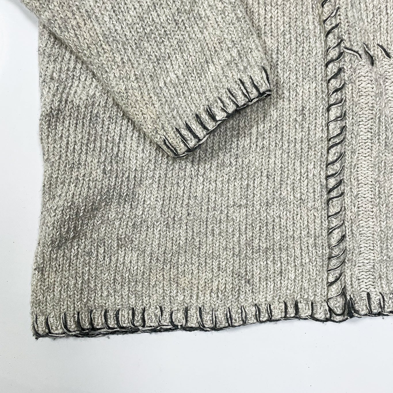 編みも天竺とリブニットと場所によって変えられ、さらにハンドステッチとどこかメゾン感も漂います。