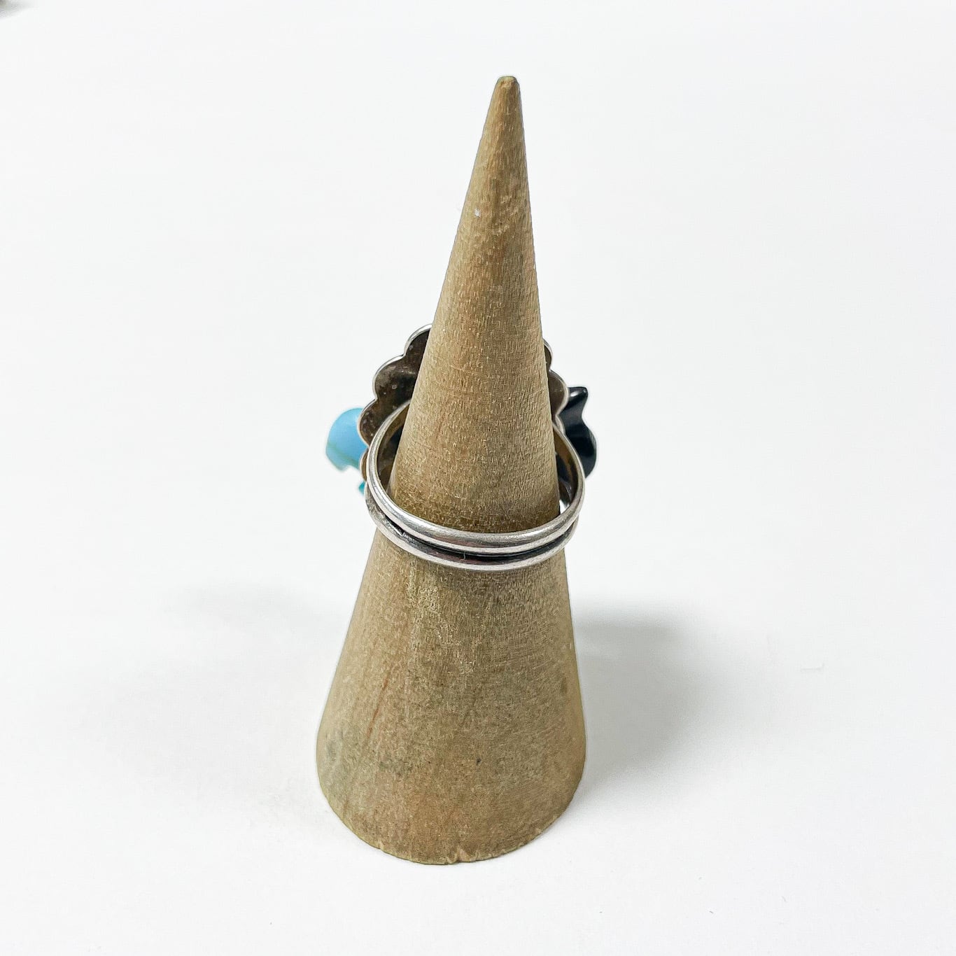 ターコイズのベアー、オニキスのバードを象ったフェティッシュが揺れ動くとっても可愛いリングです。