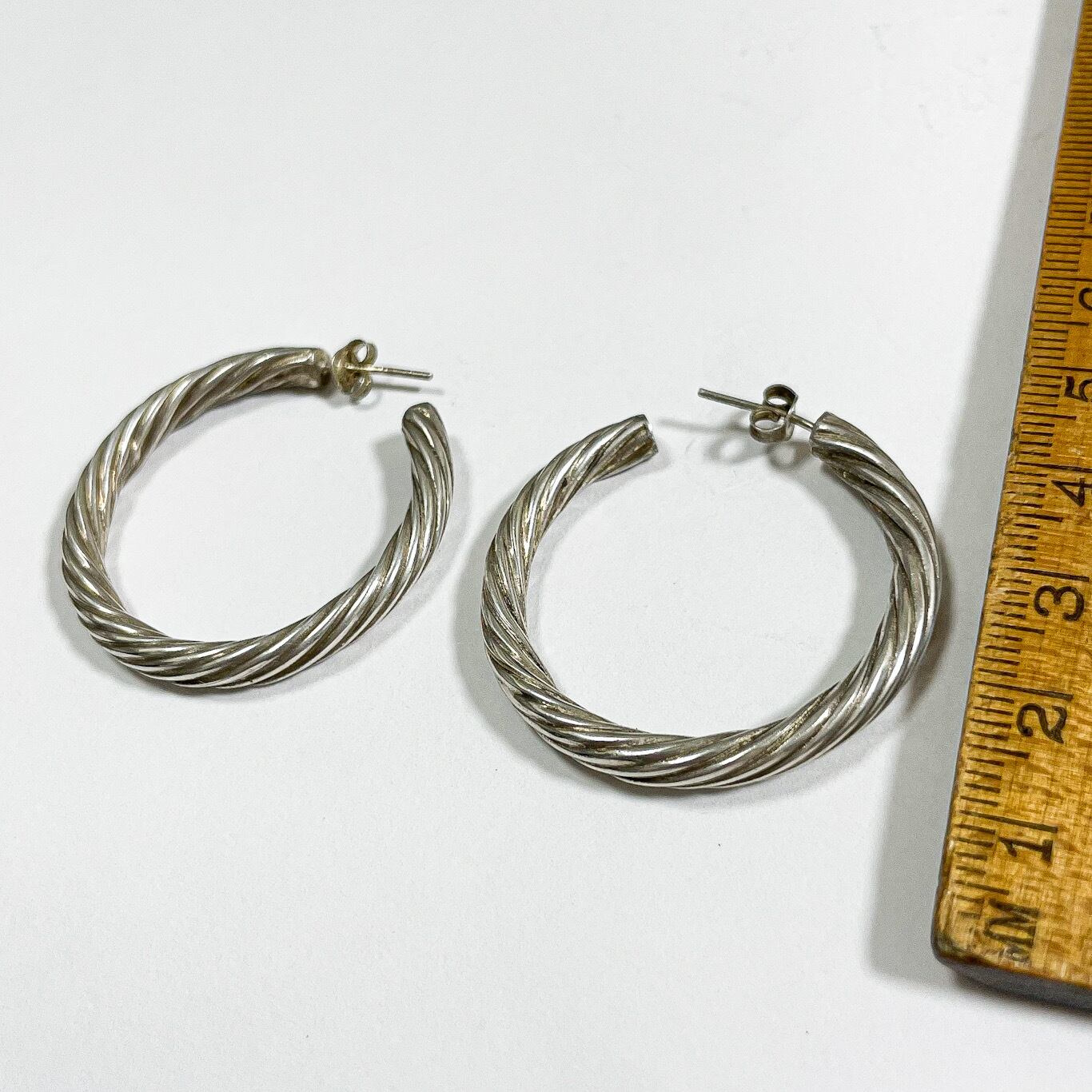 925シルバーのツイストフープピアスです。