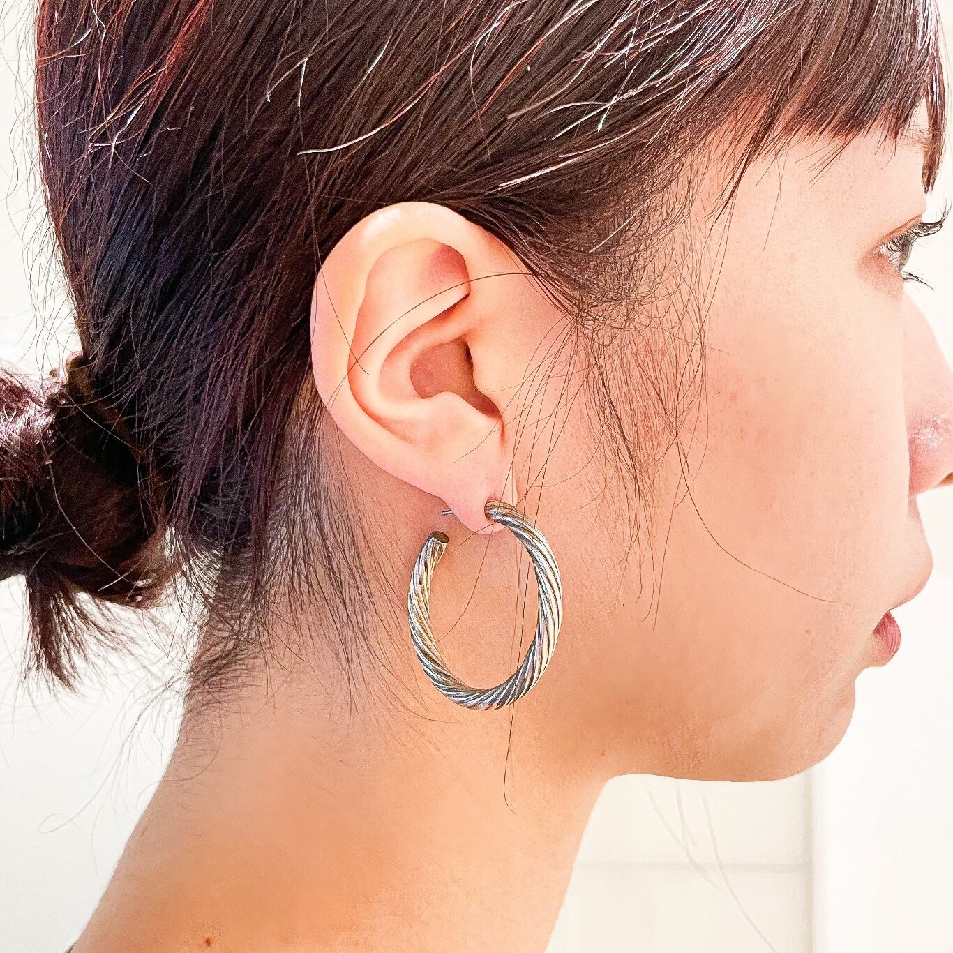 ツイストの細やかなラインが光を受けて繊細に輝き、耳元に上品なアクセントをプラスします。