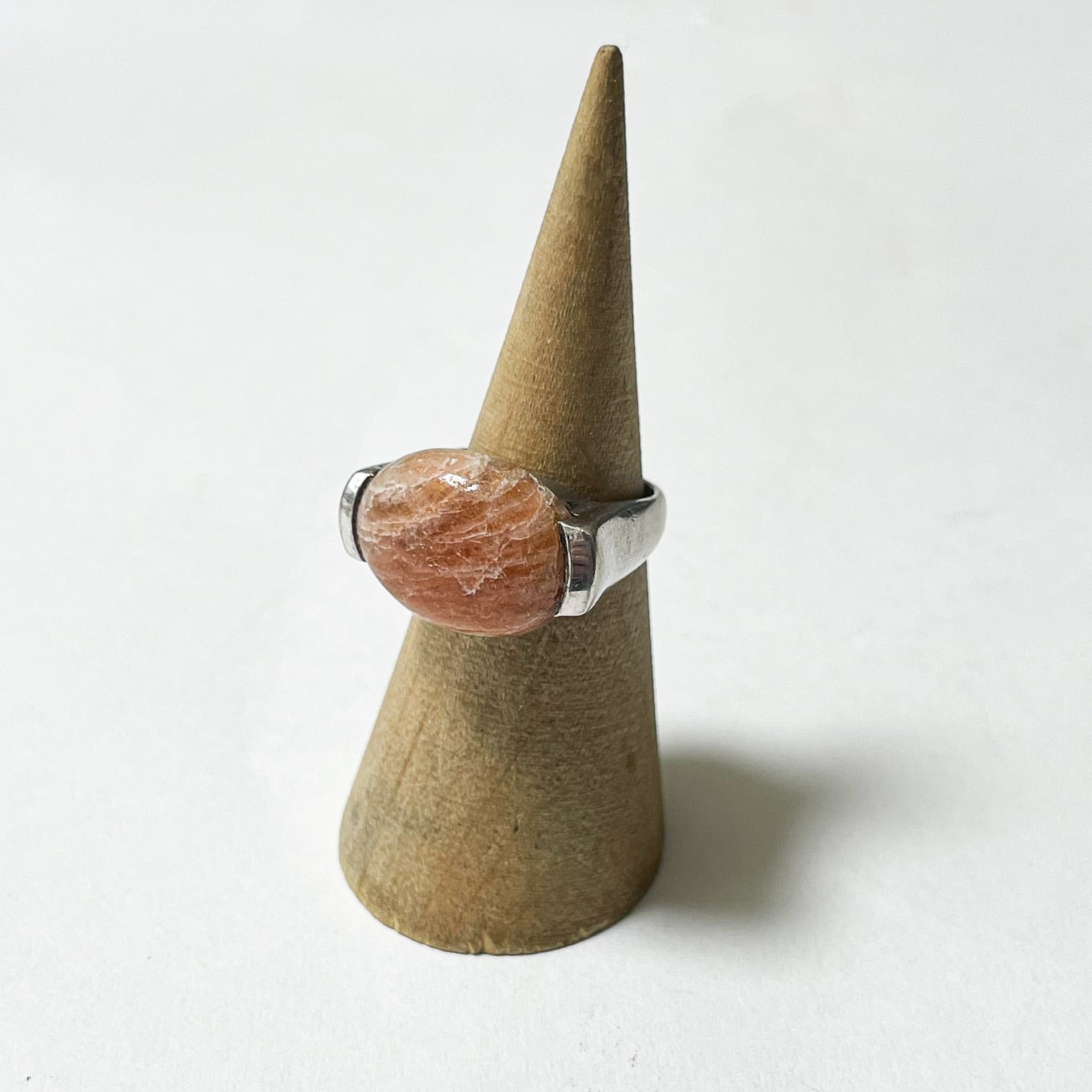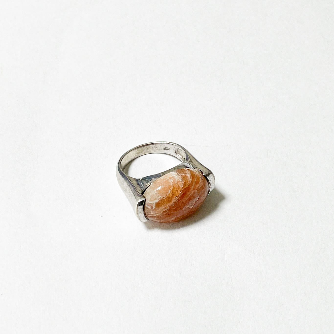 サンストーンがセットされた存在感のある925シルバーリングです。