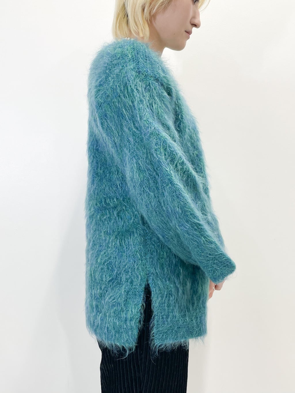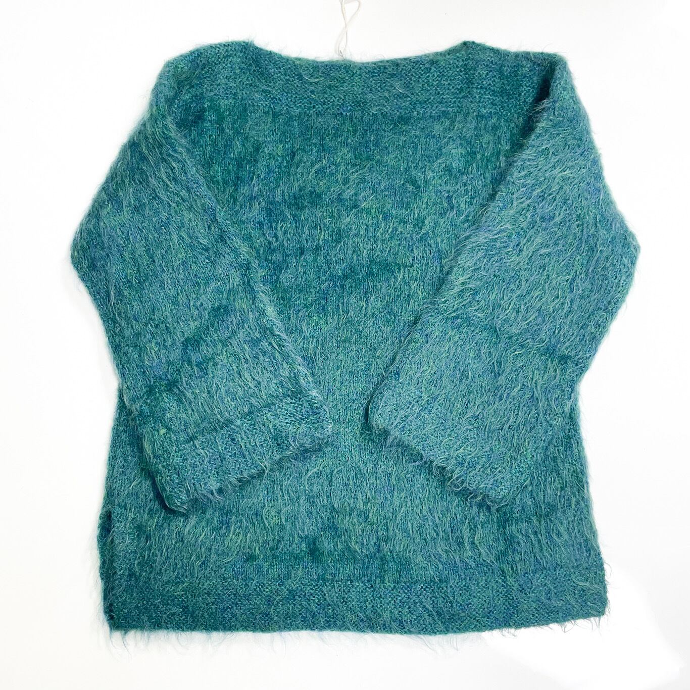 モヘアならではのふんわりとした毛足と独特の深みのあるブルーグリーンカラーが魅力です。