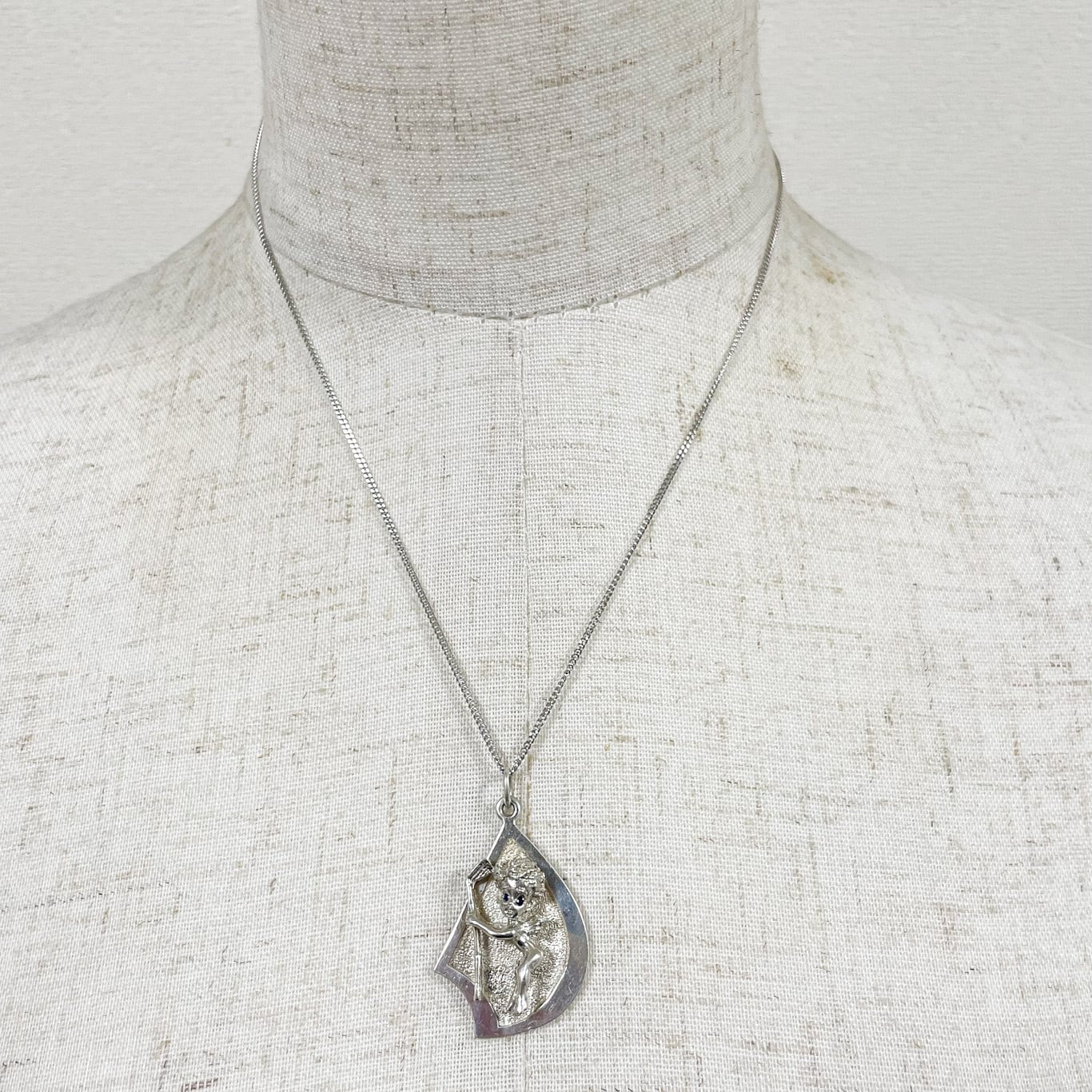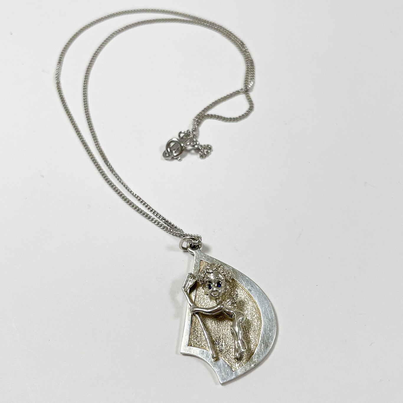 天使がゴルフのパターを構えるという遊び心あるデザインに加え、瞳には小さな青いビジューがセットされており、どこかコスチュームジュエリー感が漂う可愛らしさと個性が際立つ一点です。