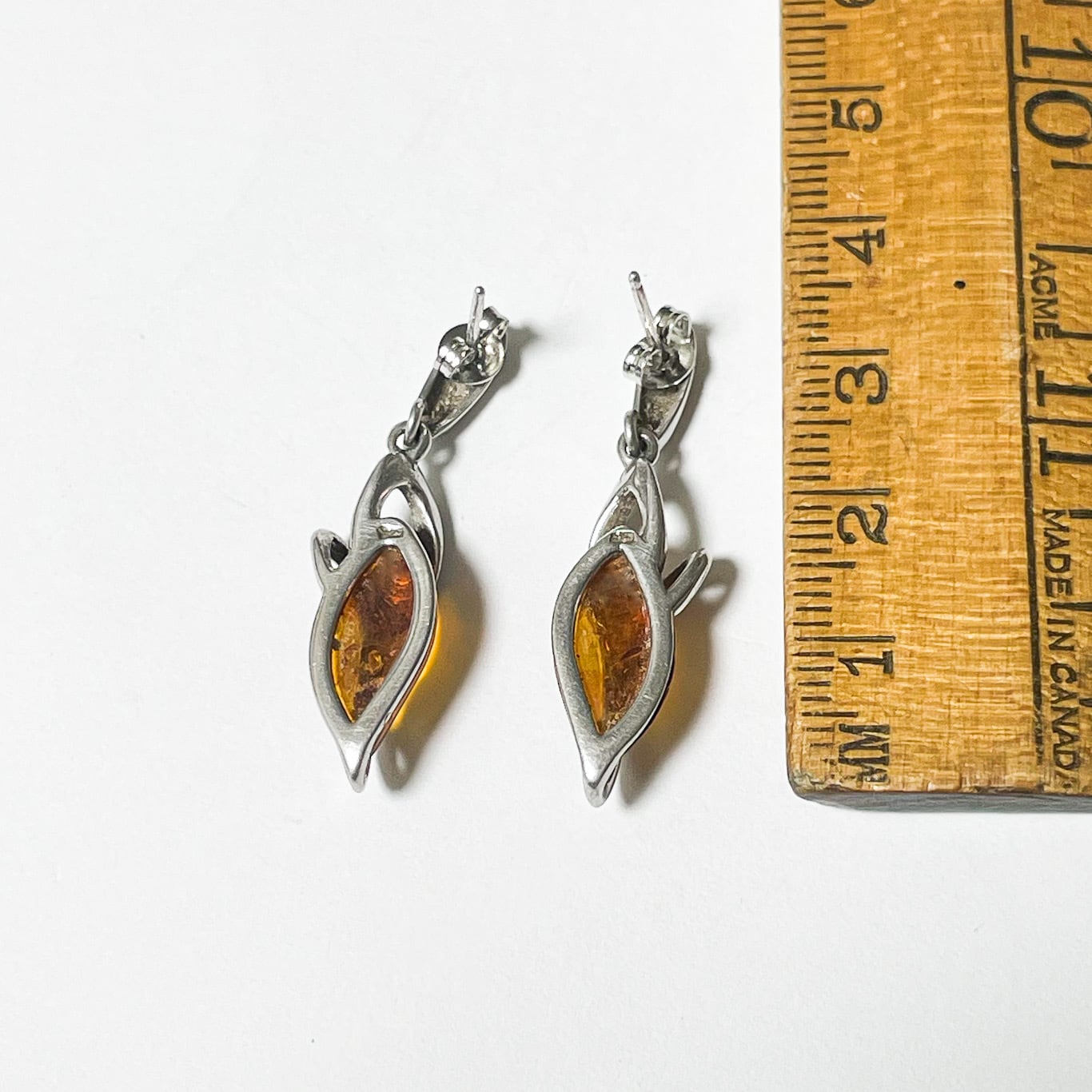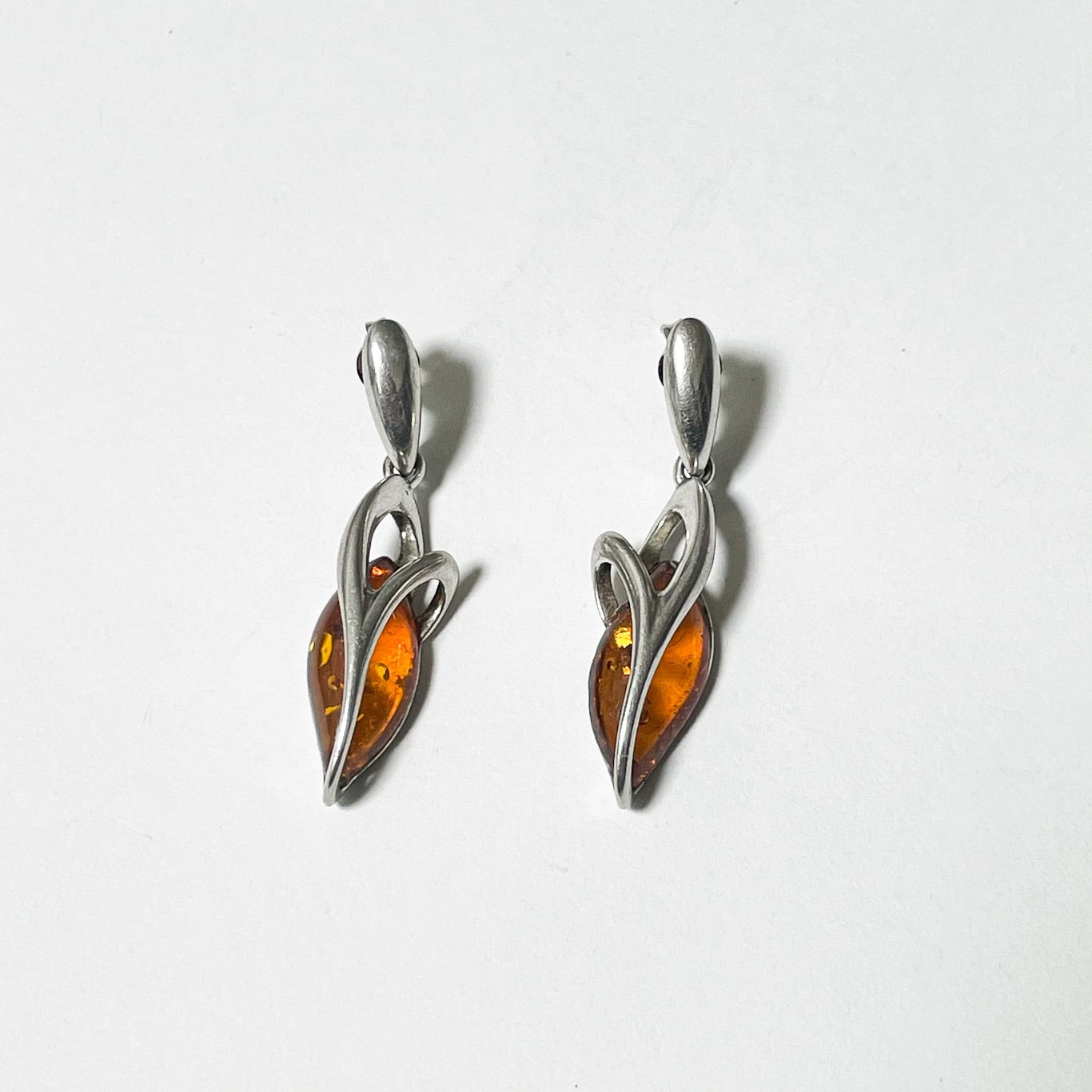 温かみのある琥珀をシルバーで包み込んだ、アール・ヌーヴォー調のデザイン。