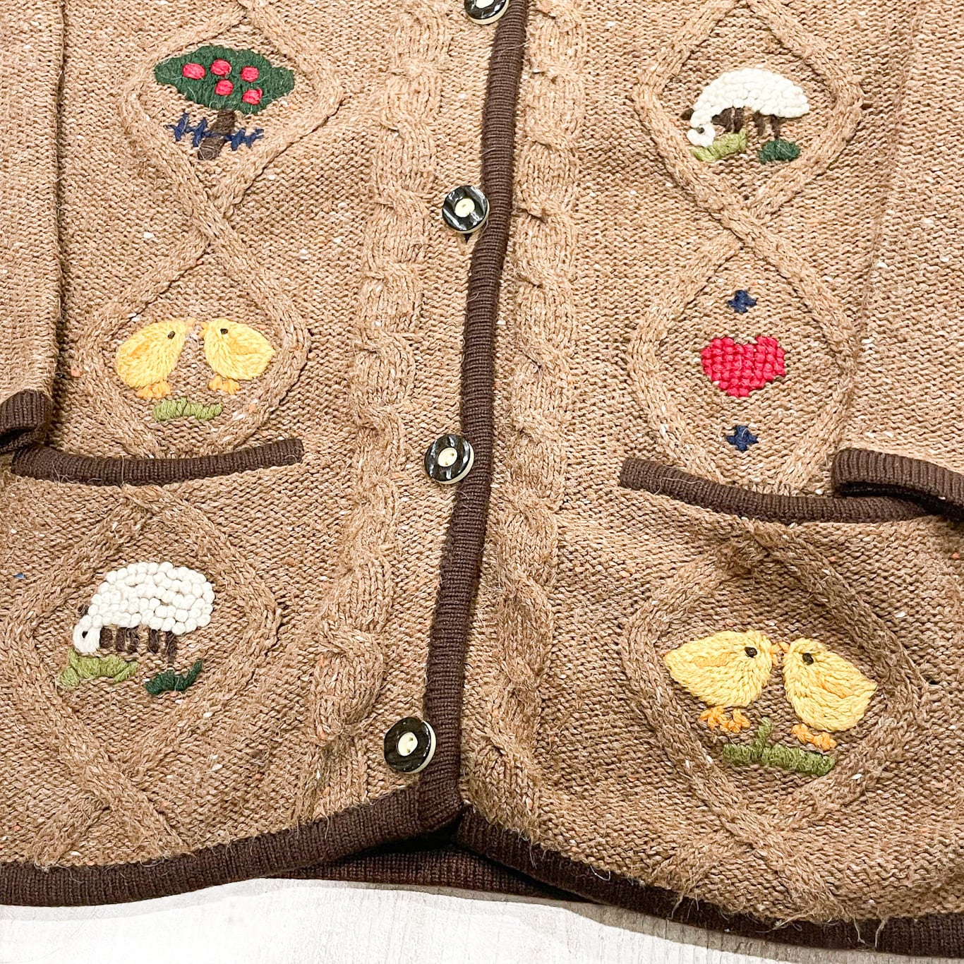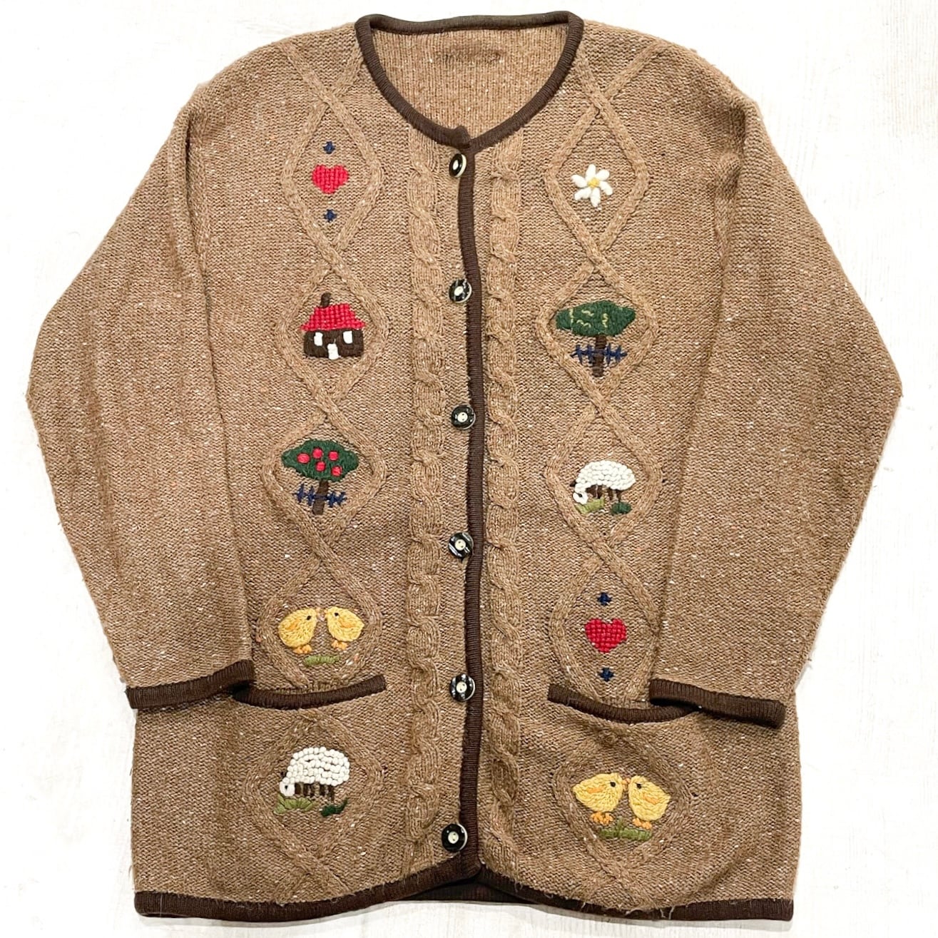 羊や小鳥、ハート、木、小屋など、アルプス圏の伝統刺繍を思わせる素朴で温かいデザインが魅力です。