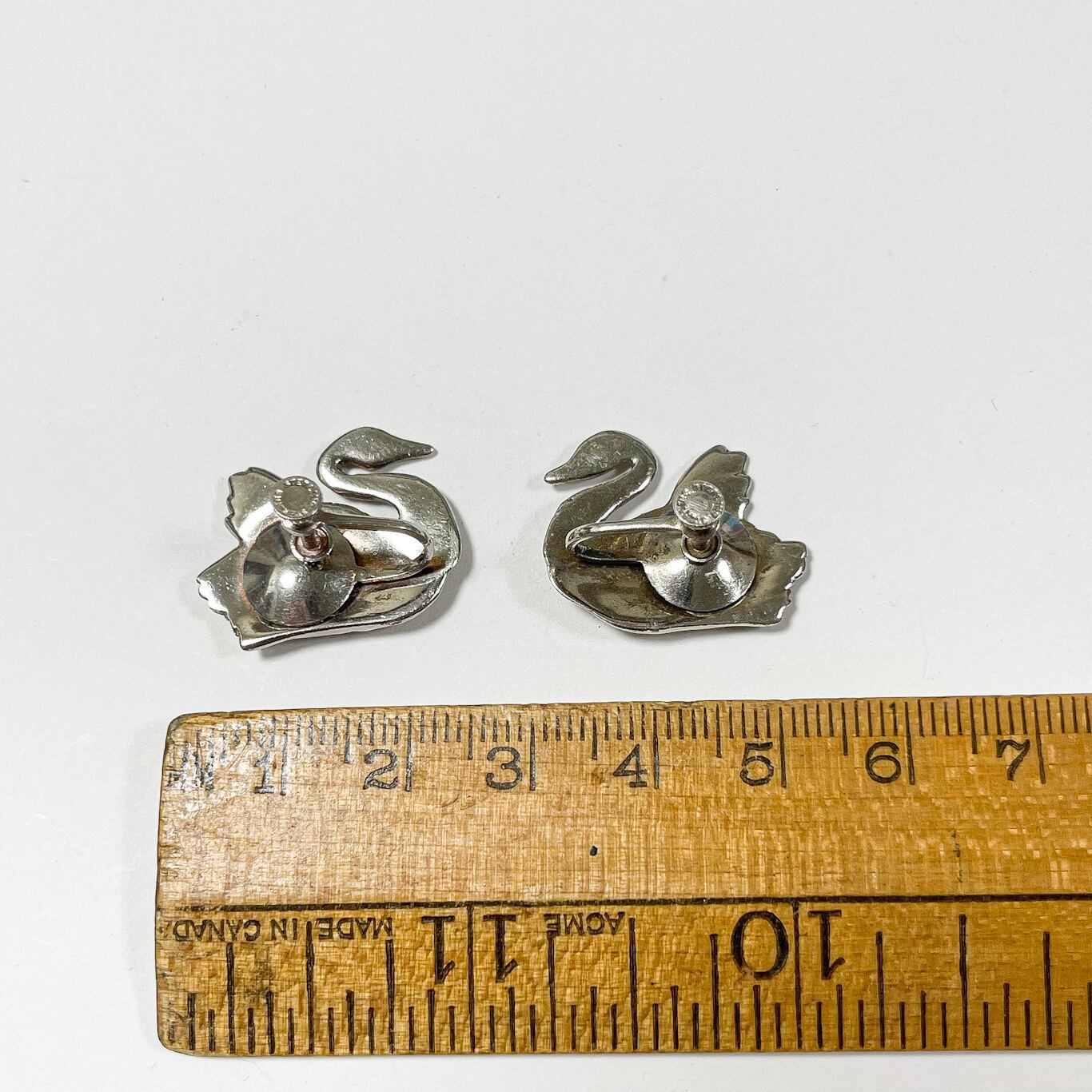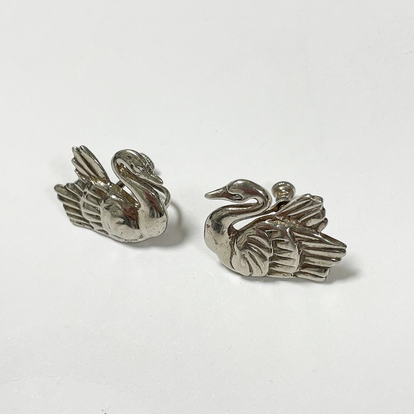 白鳥モチーフのスターリングシルバー製ヴィンテージイヤリング。