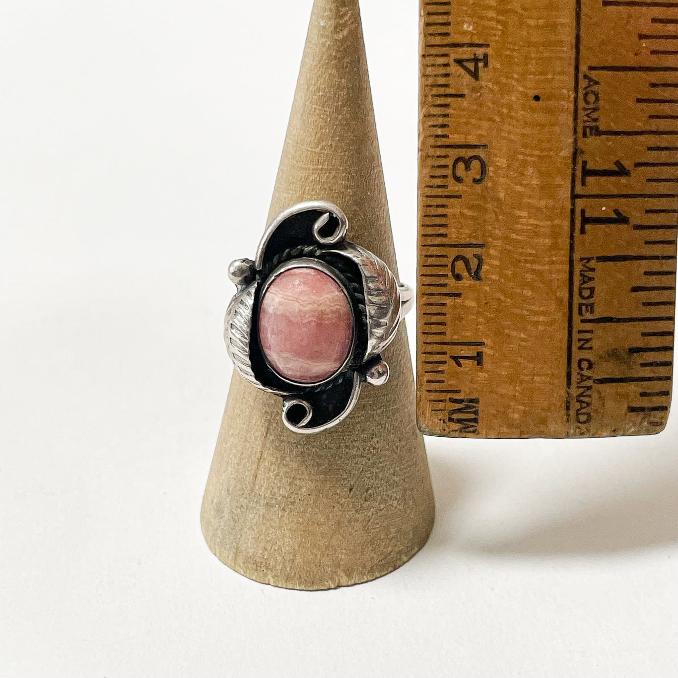 インカローズがマウントされたインディアンジュエリーのヴィンテージリングです。