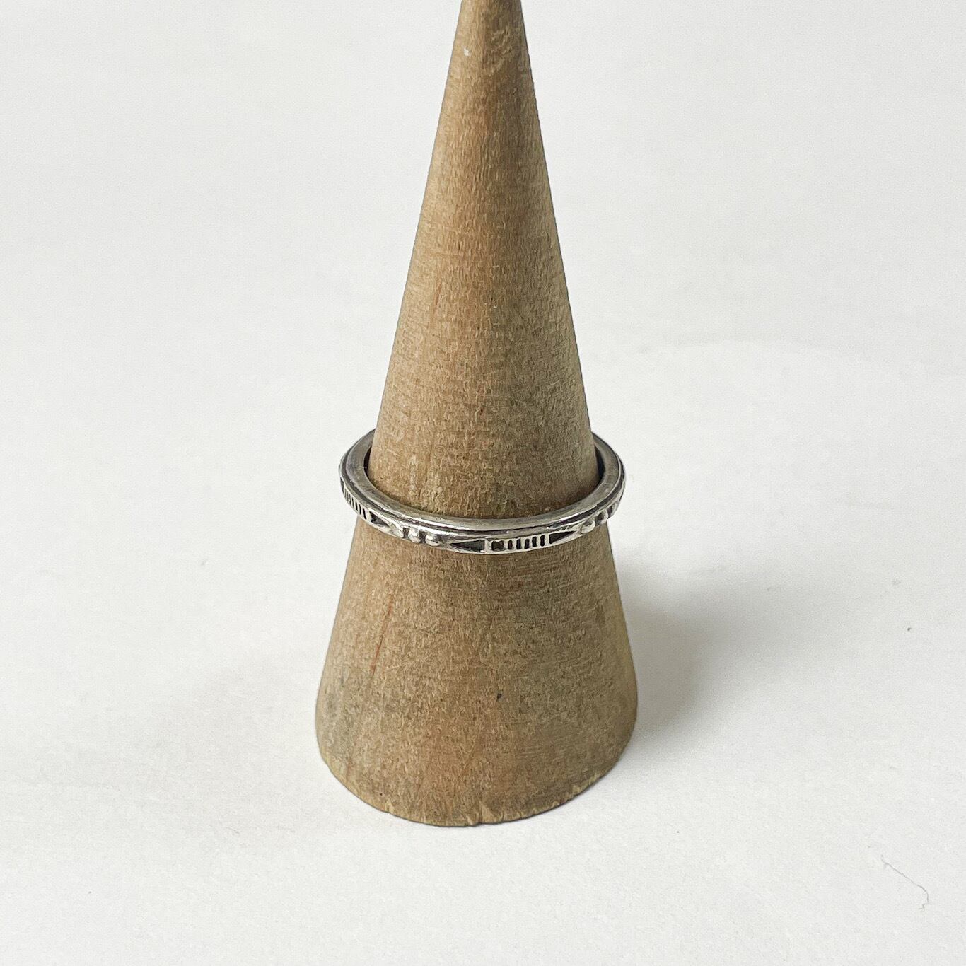 比較的細身のアームには、ネイティブ調のスタンプワーク風デザインが施され、確かな存在感を放ちます。