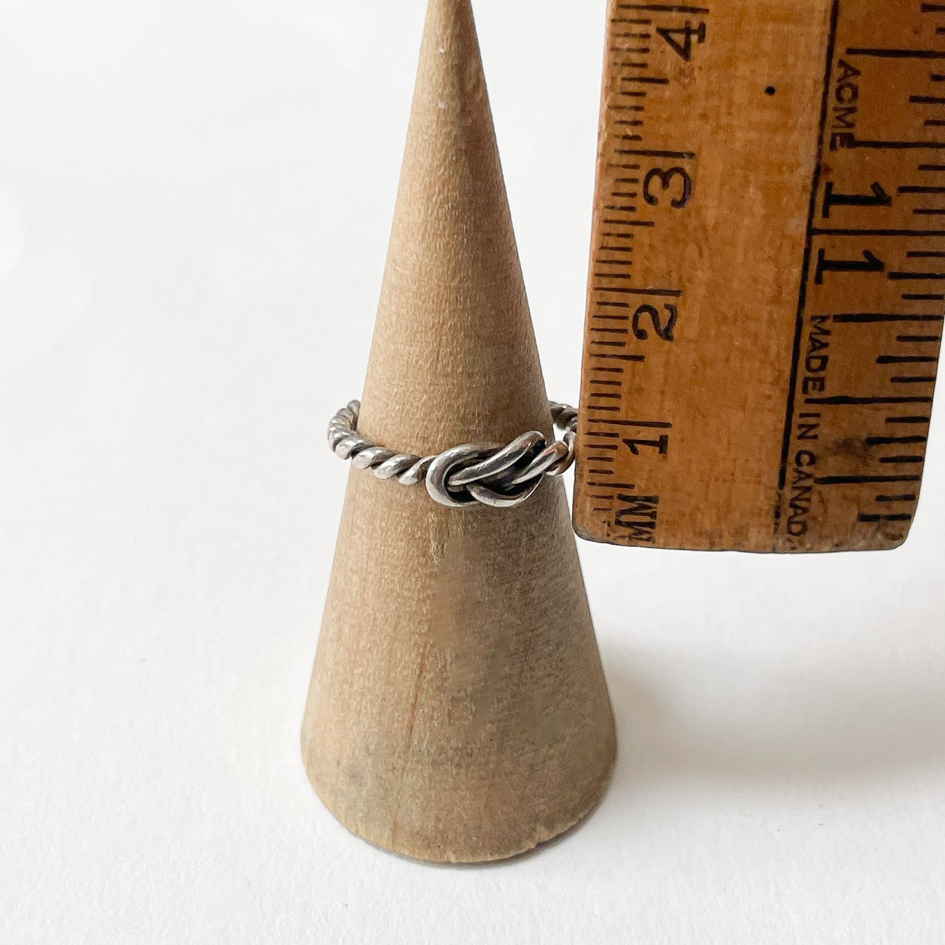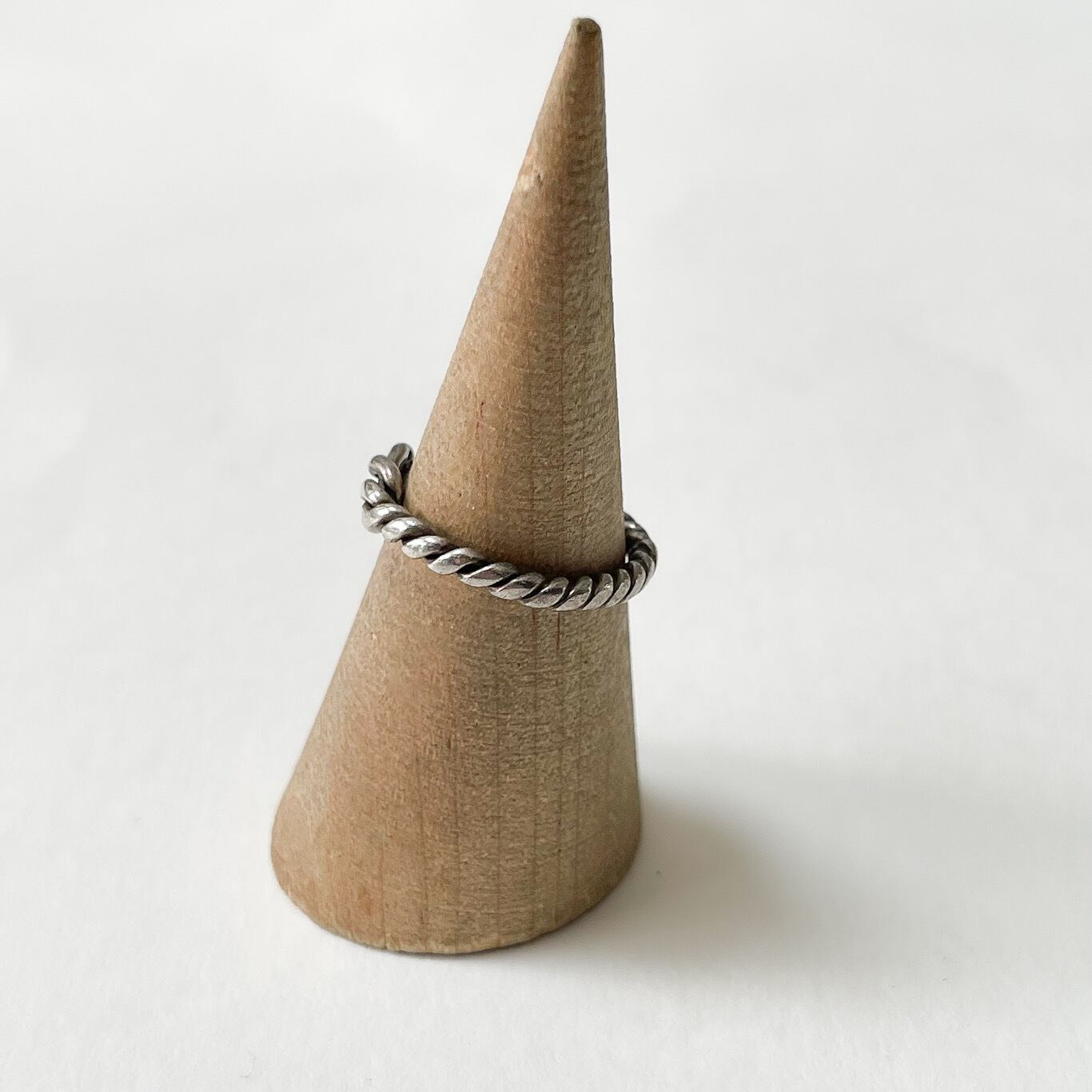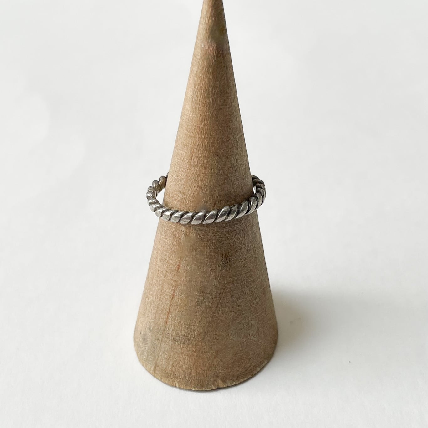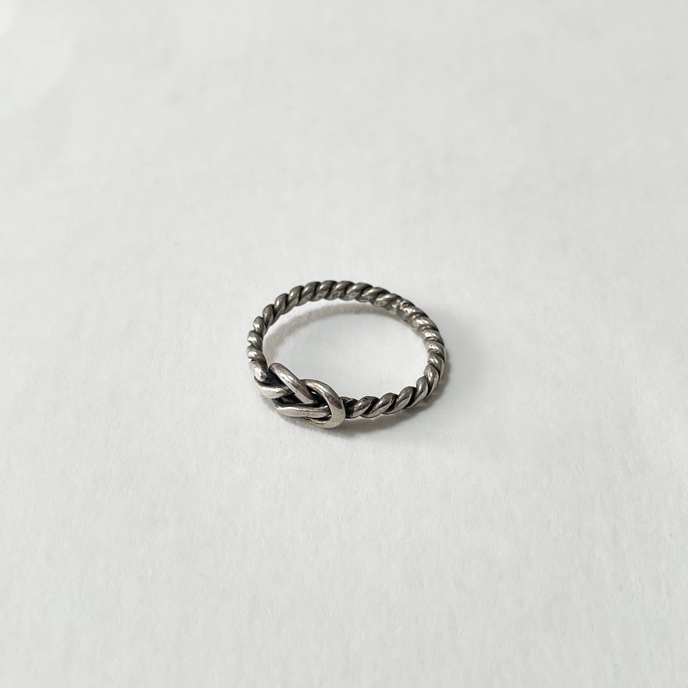 925シルバーのツイストノットリングです。 ロープ状にツイストされたシルバーに、さりげないノットモチーフがあしらわれたデザインです。 繊細な編み込みが指元に上品な表情を与えてくれます。 925の刻印が確認できます。 こちらは80's〜のお品です。 Weight*約2.8g Size*約12号 Condition*特に目立つダメージや汚れはなく良い状態です。 あくまでUSEDですので神経質な方や新品の様なものをお求めの方はご購入をお控え下さいませ。
