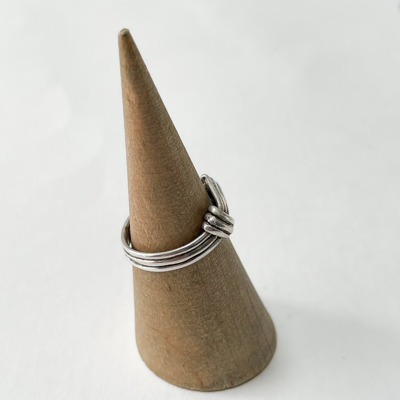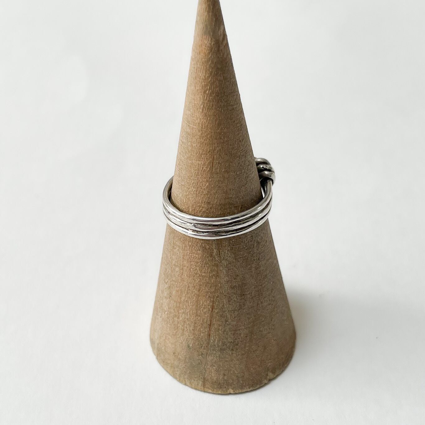 複数のシルバーワイヤーを束ね、立体的なノットデザインに仕上がっています。