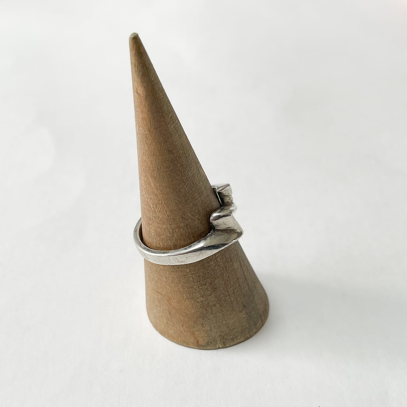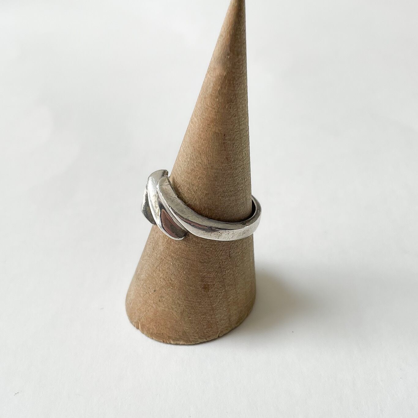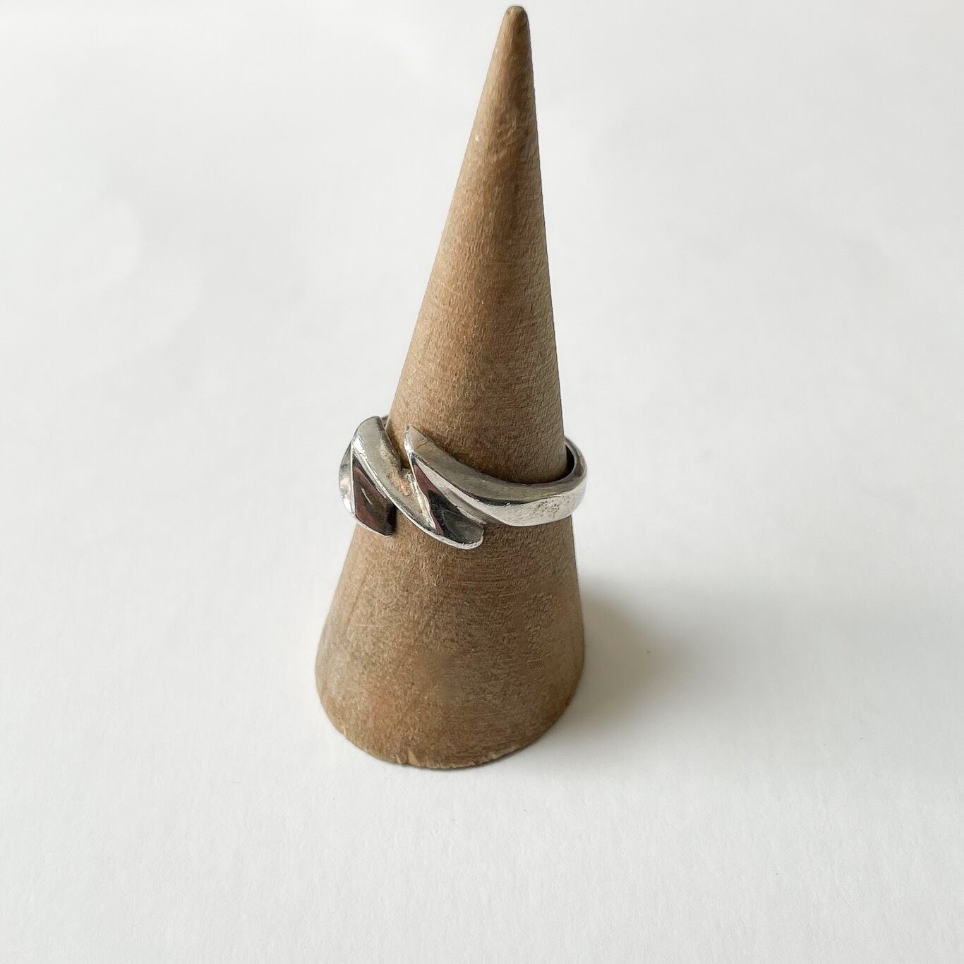程よく主張のある独特なフォルムながら指なじみは良く、スタイリングのアクセントとして取り入れやすいお品です。