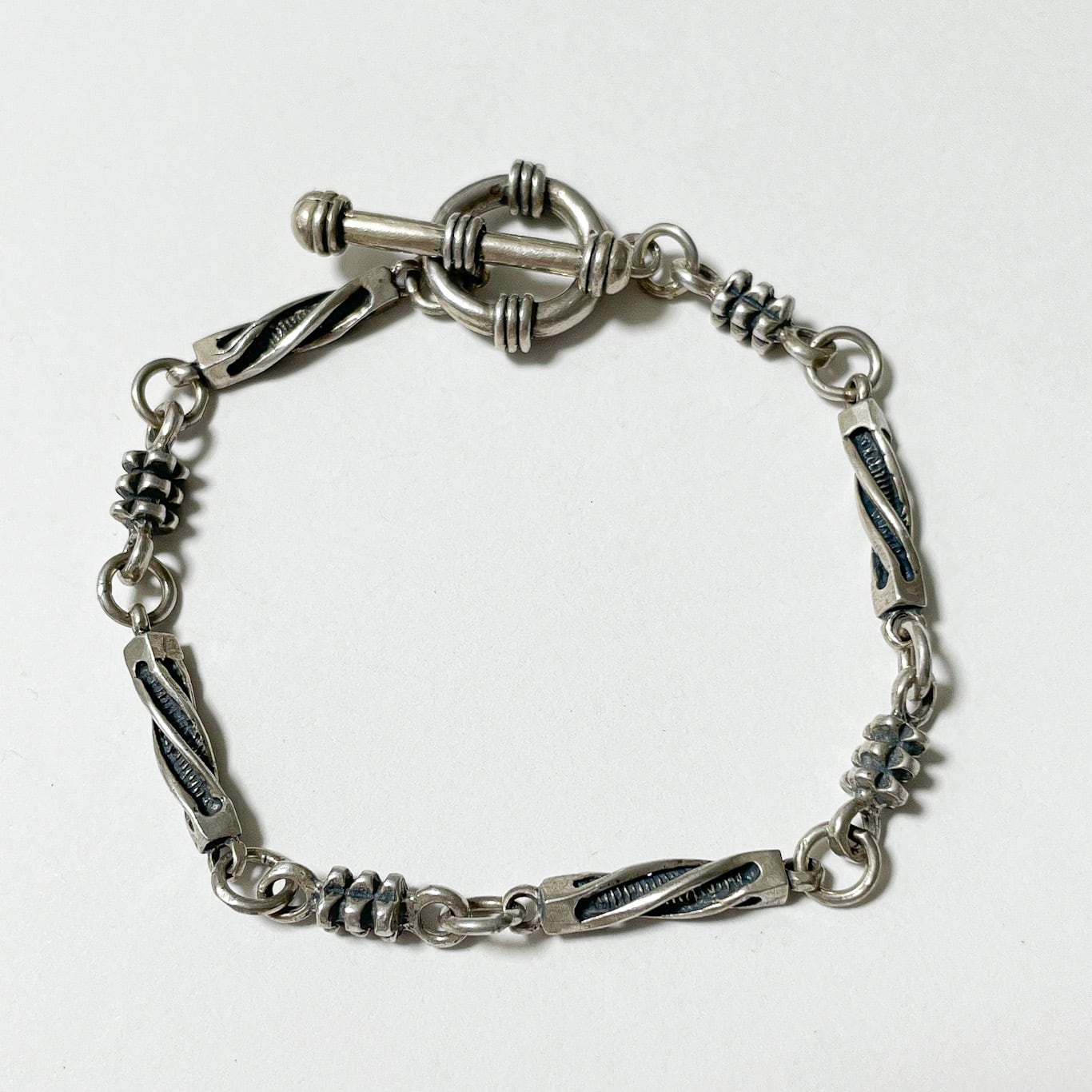 独特な構造が目を引く925シルバーのヴィンテージブレスレットです。