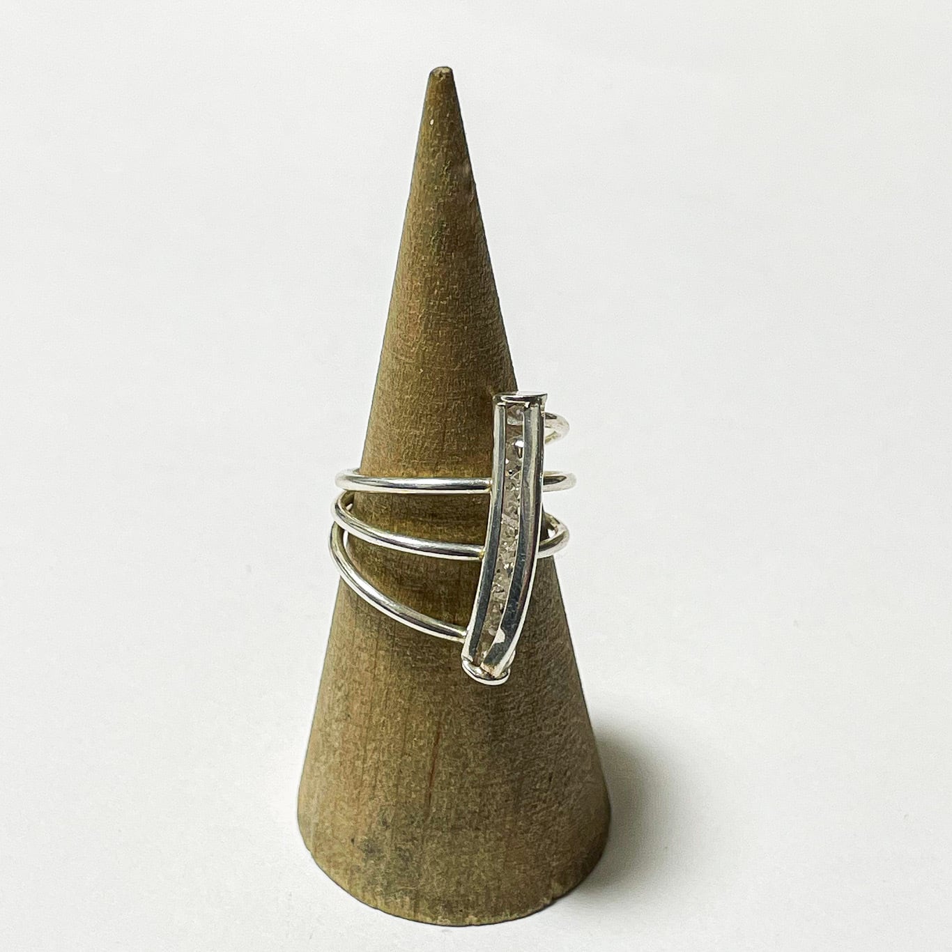 3本のシルバーワイヤーが重なる立体的なフォルム。