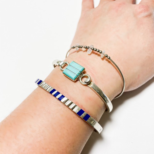 925シルバーのワイヤーに、シルバービーズとラブラドライトを組み合わせたブレスレットです。