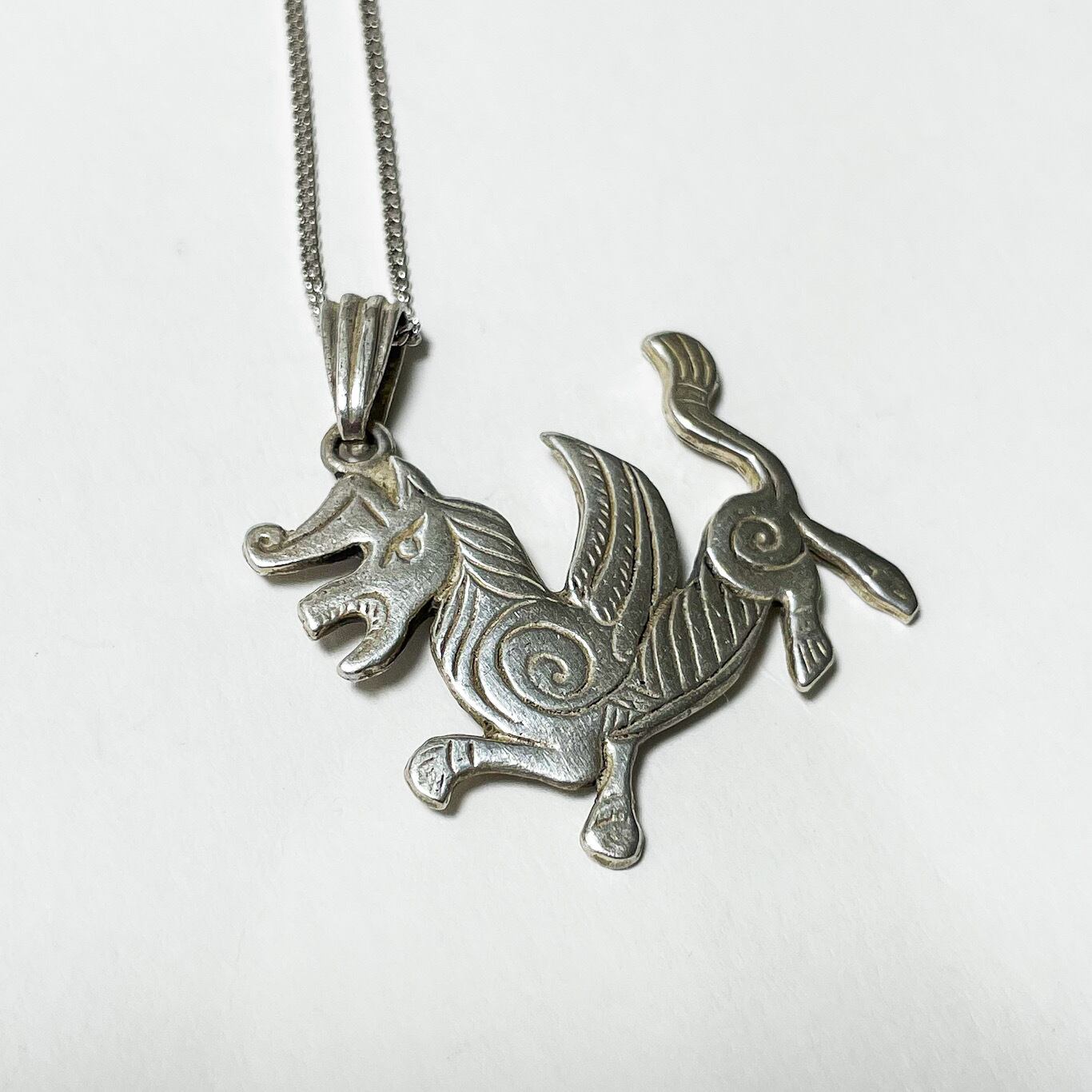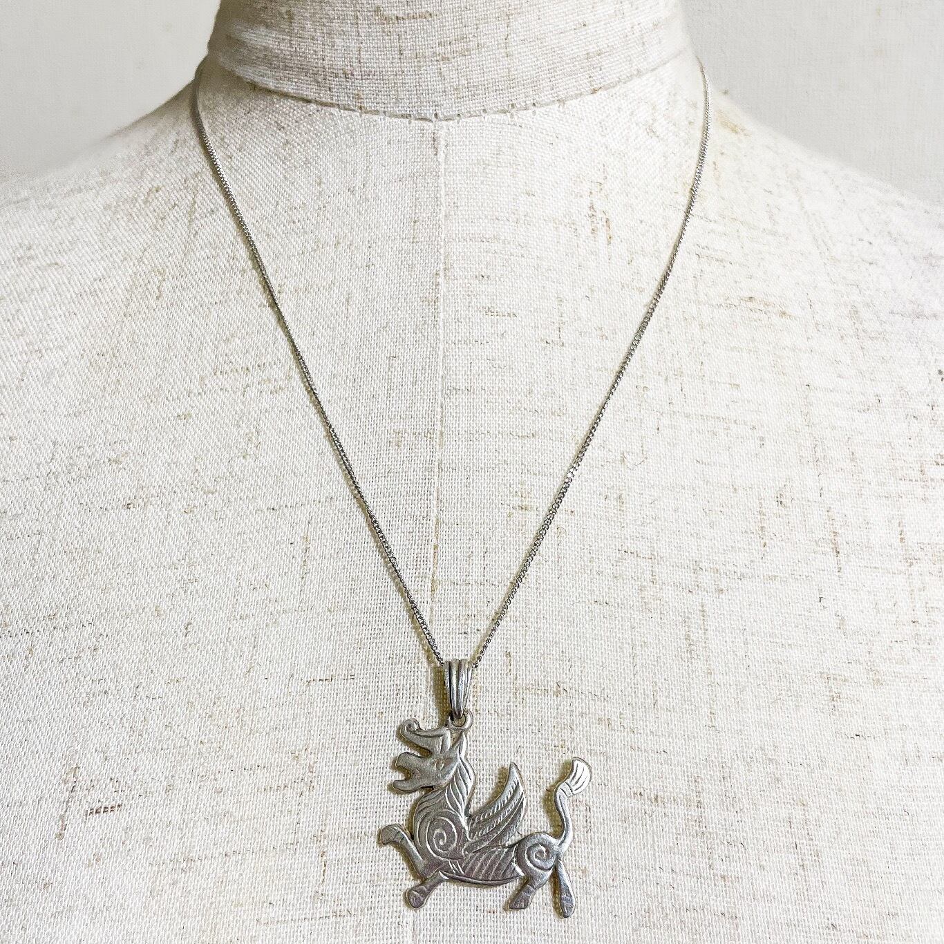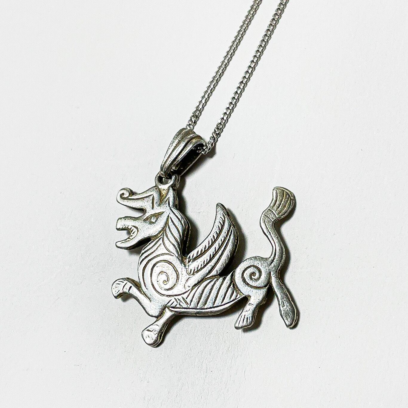 ハンガリー製925シルバーのピーコックドラゴンモチーフペンダントネックレスです。
