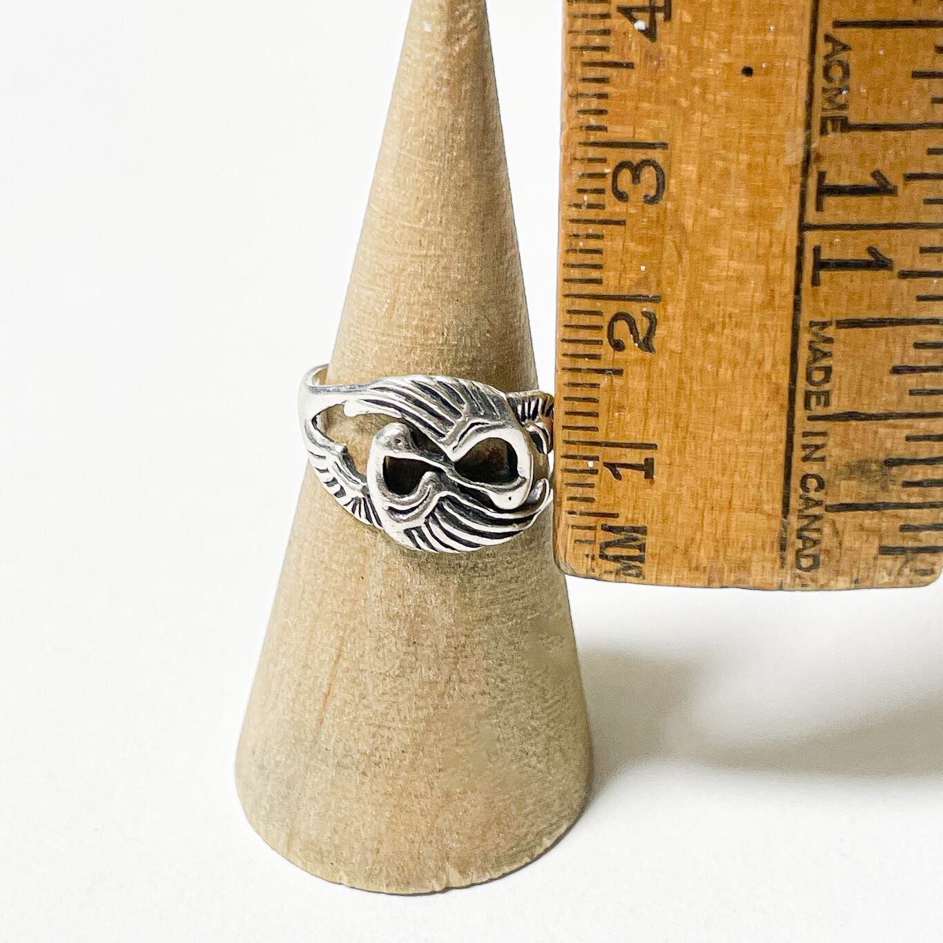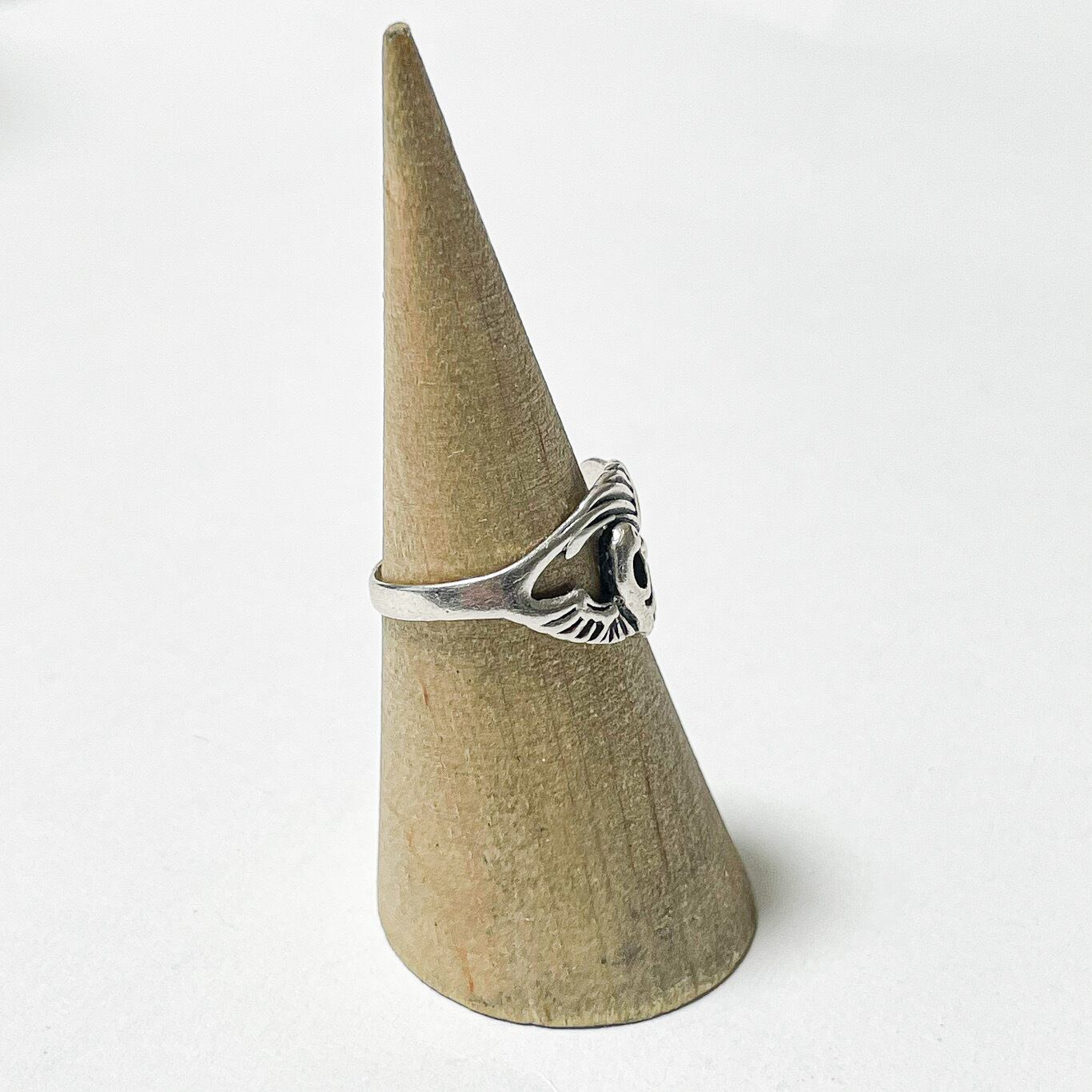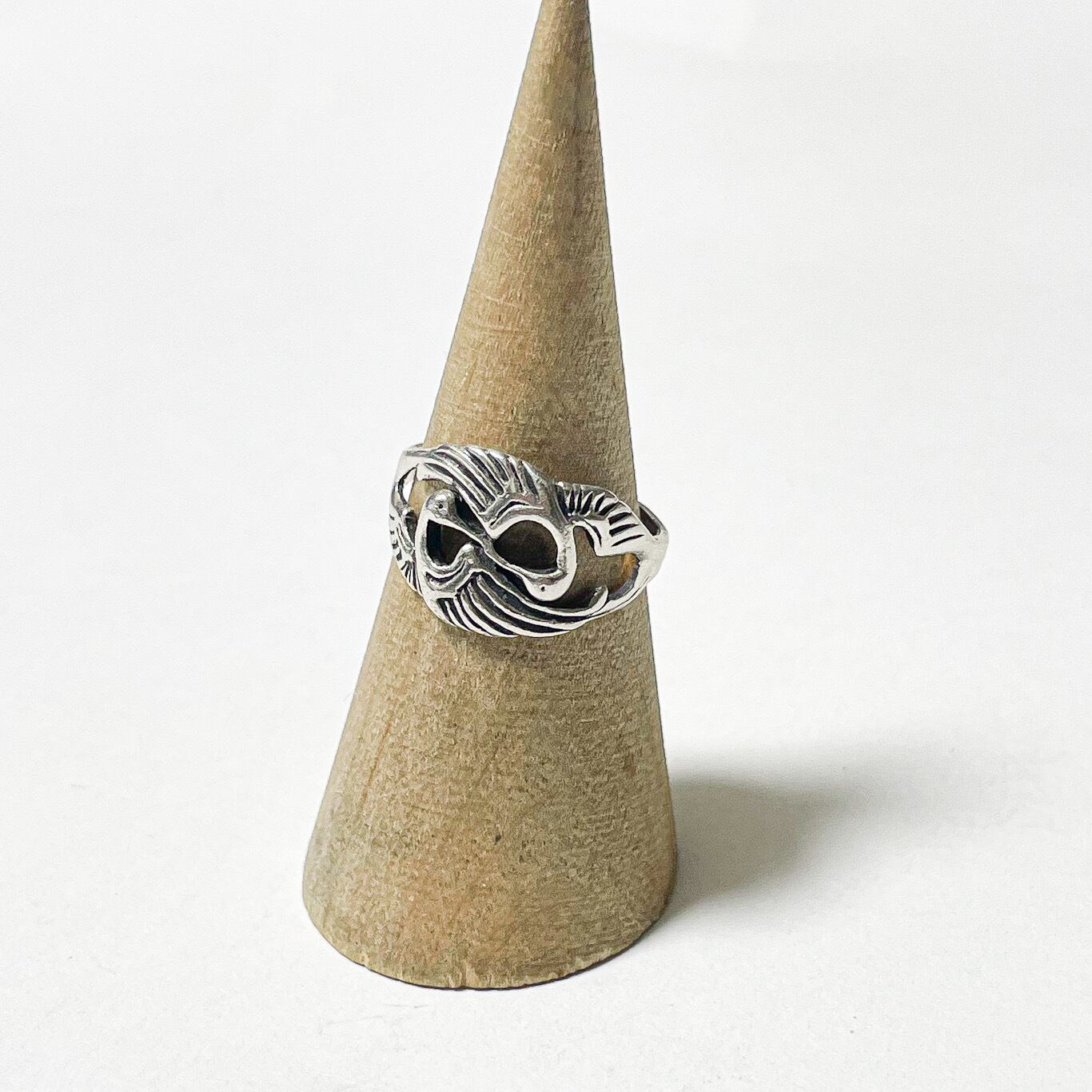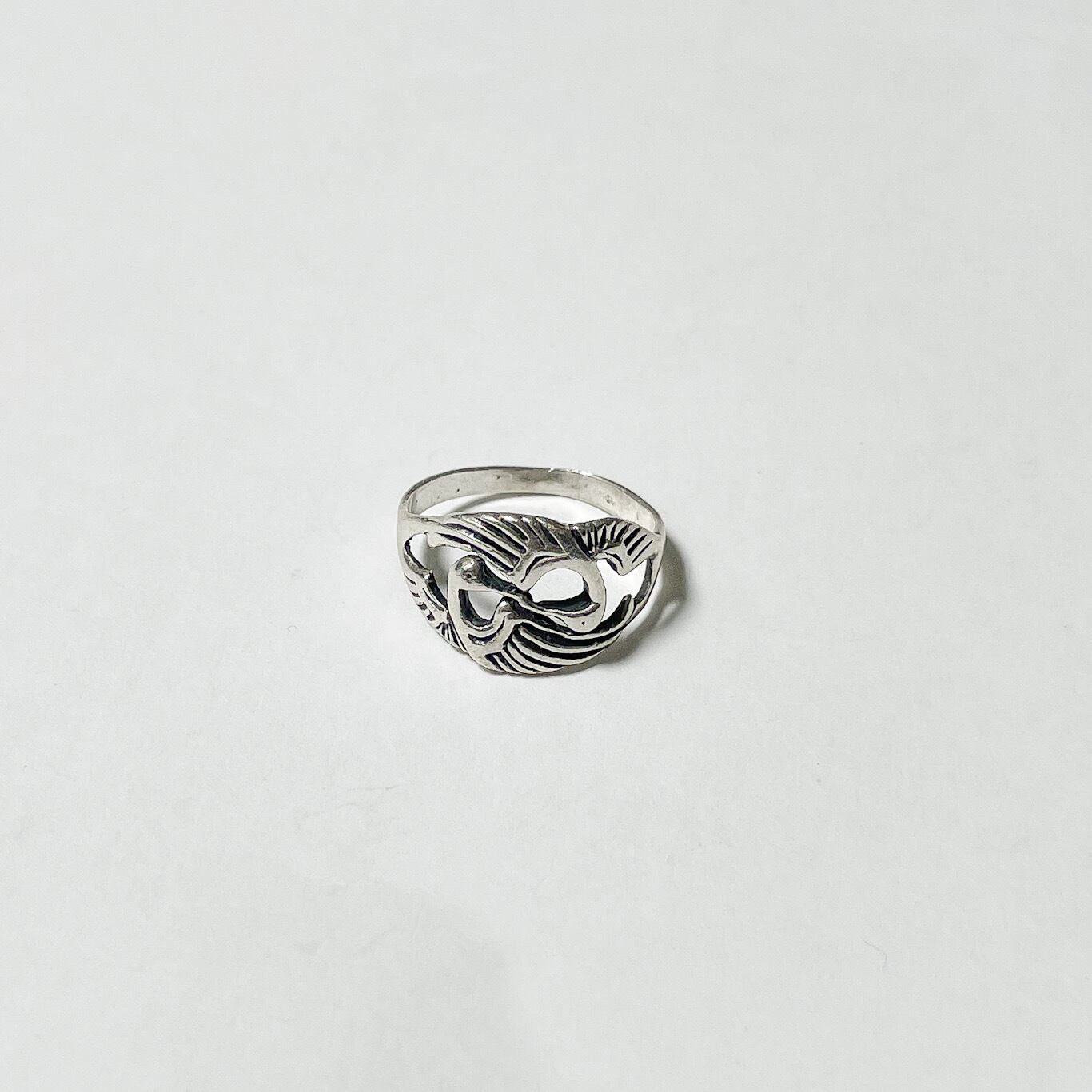 925シルバーの白鳥リングです。 左右反転された二羽の白鳥が向かい合い、 くちばしを寄せ合うようにデザインされたモチーフが特徴です。 シンメトリー構成がアートの様です。 925の刻印が確認できます。 こちらは推定90's〜のお品です。 Weight*約2.7g Size*約14号 Condition*特に目立つダメージや汚れはなく良い状態です。 あくまでUSEDですので神経質な方や新品の様なものをお求めの方はご購入をお控え下さいませ。