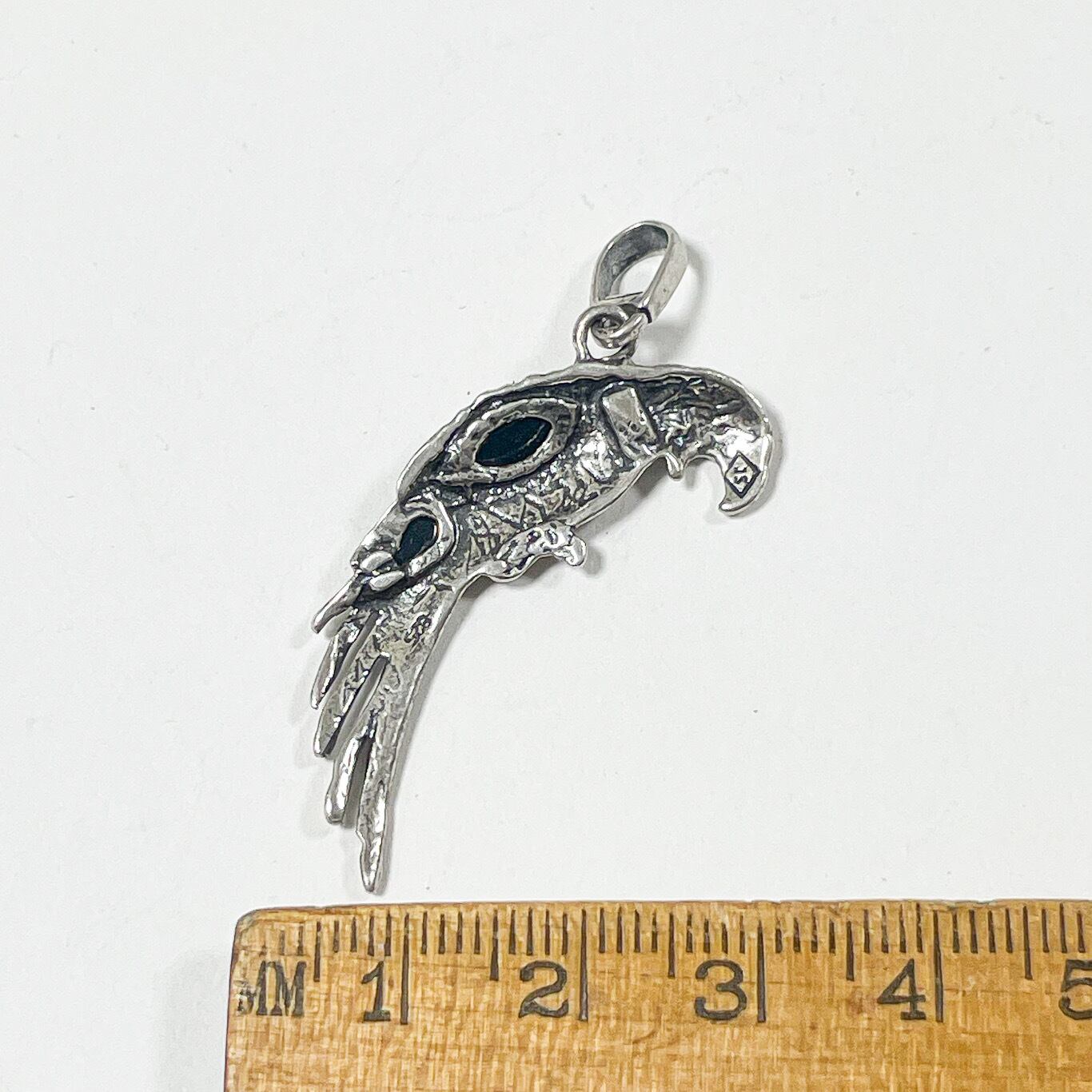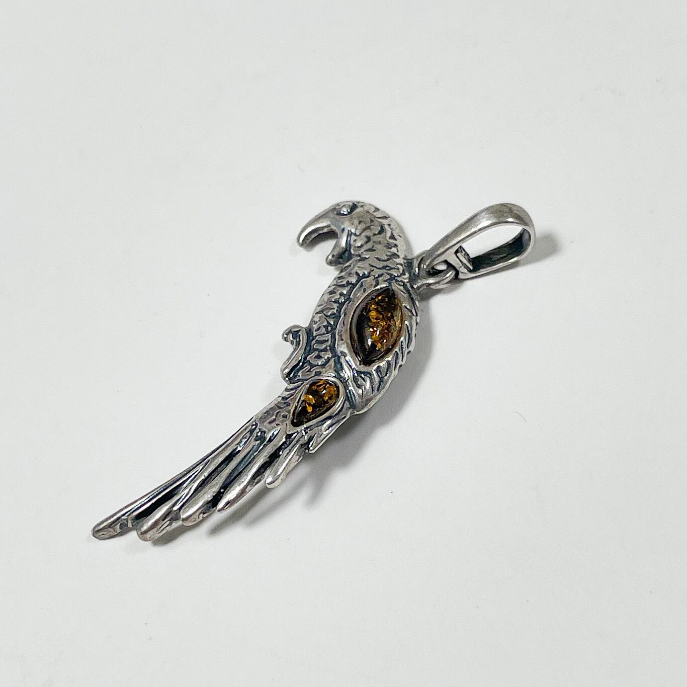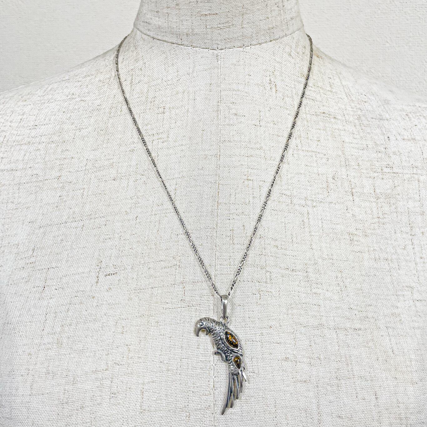パロットモチーフに琥珀をあしらったシルバーペンダントトップです。