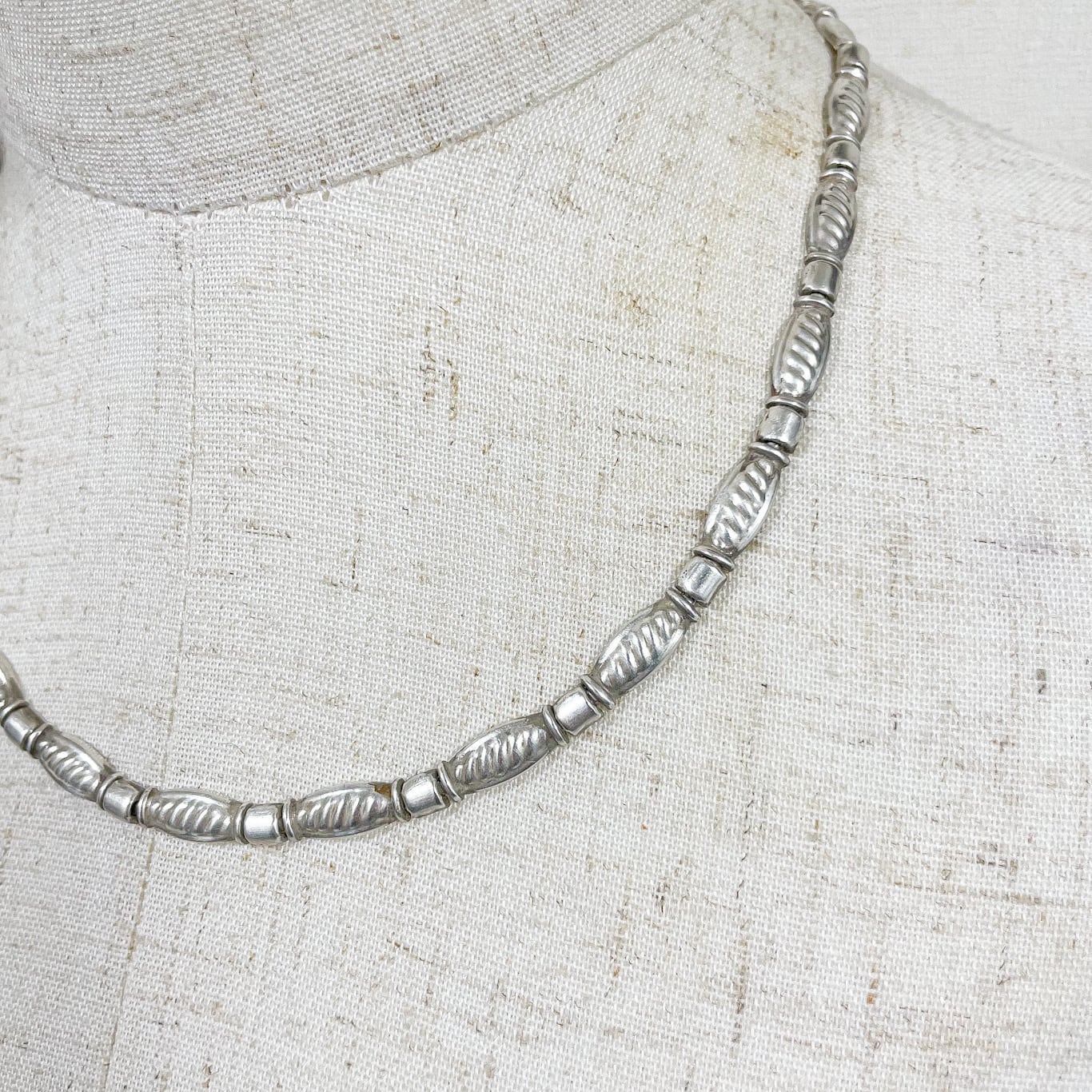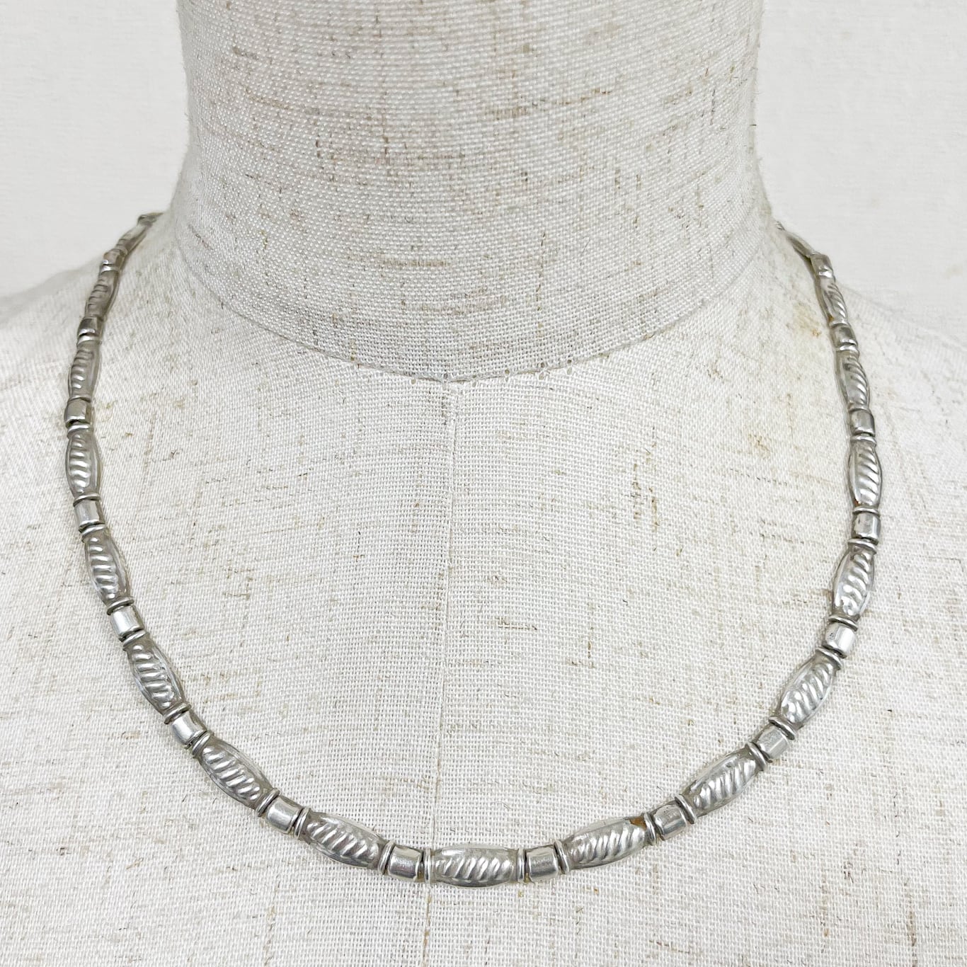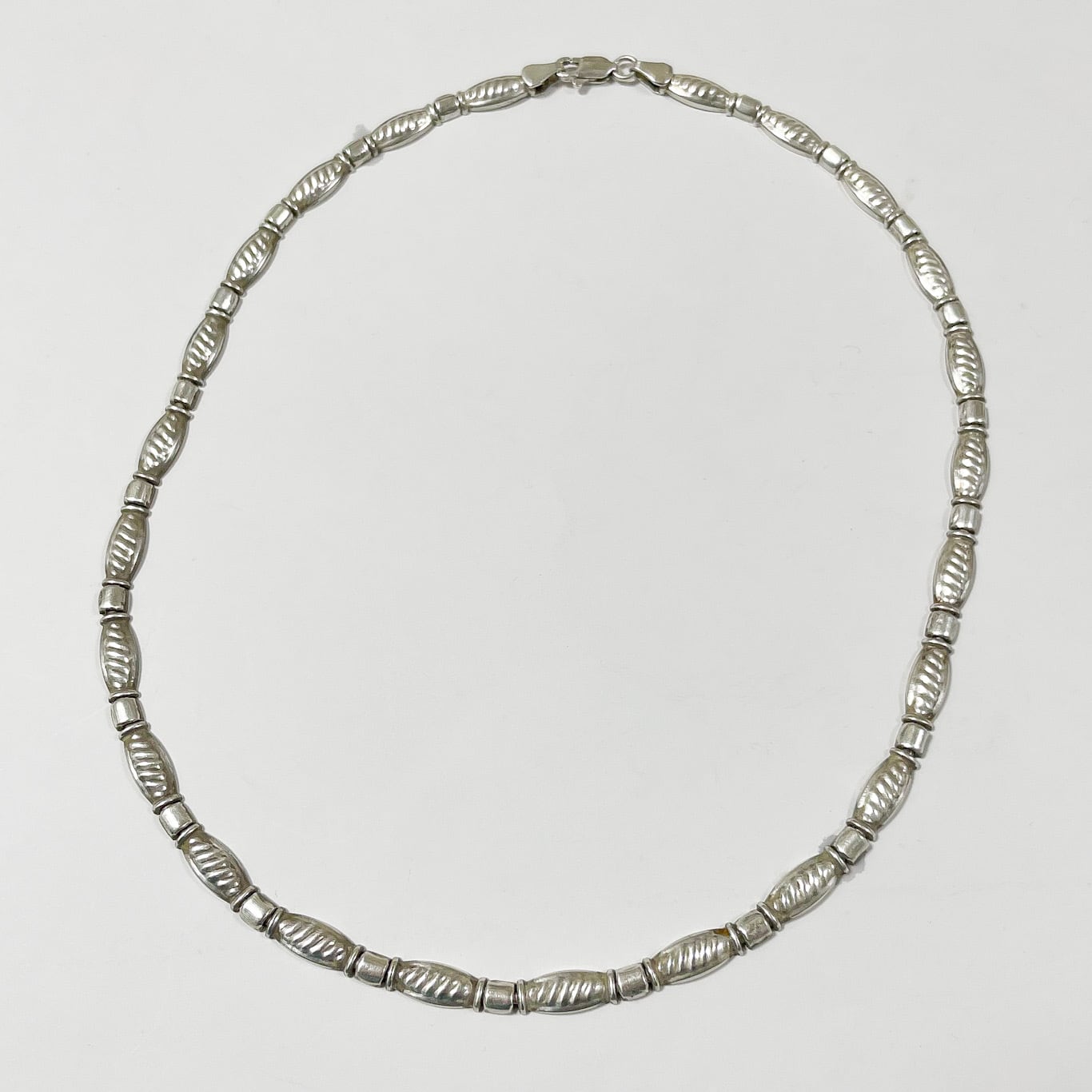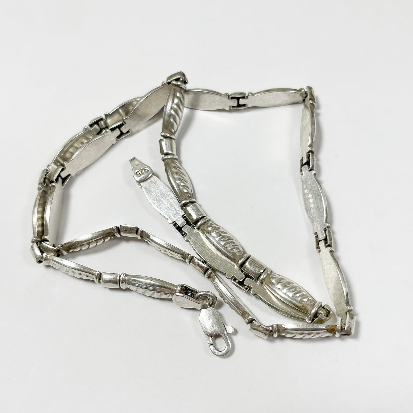 立体的なパーツがリンクした、チェコ/スロバキア製925シルバーネックレスです。