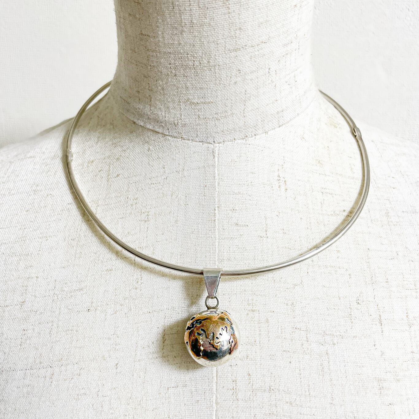 メキシコ製925シルバーのヴィンテージ地球儀ペンダントトップです。