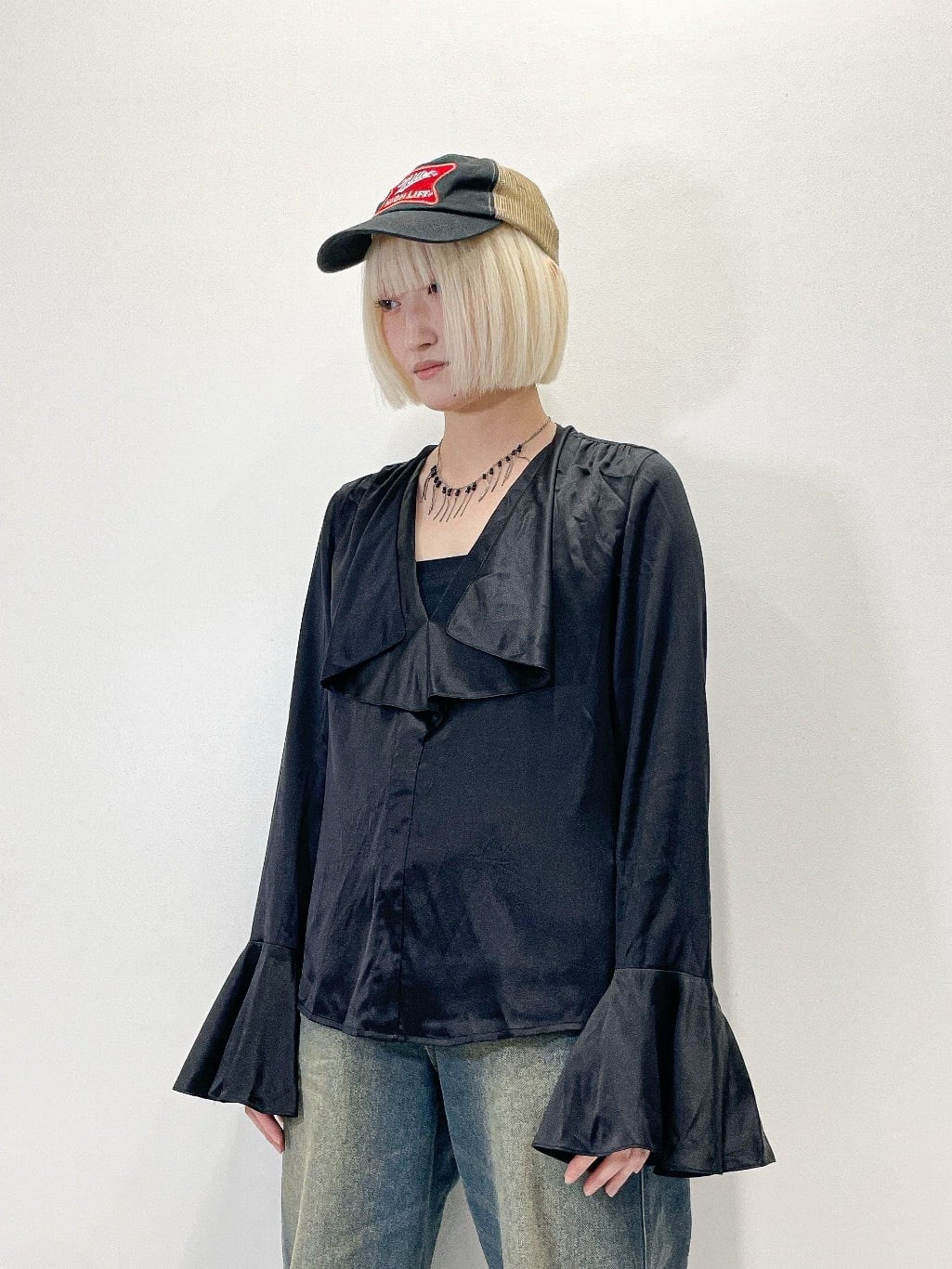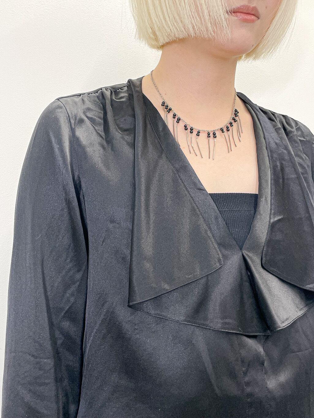 シルク特有のなめらかな光沢と落ち感が、動くたびに上品な表情を演出してくれます。