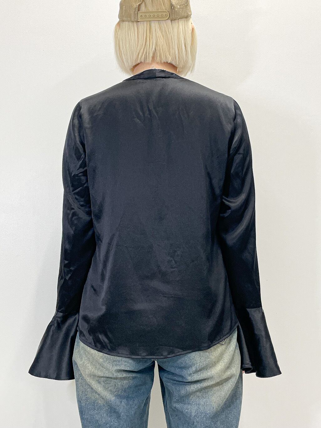 ストレッチ入りの上質なシルクサテン生地を使用したDKNYのブラウスです。