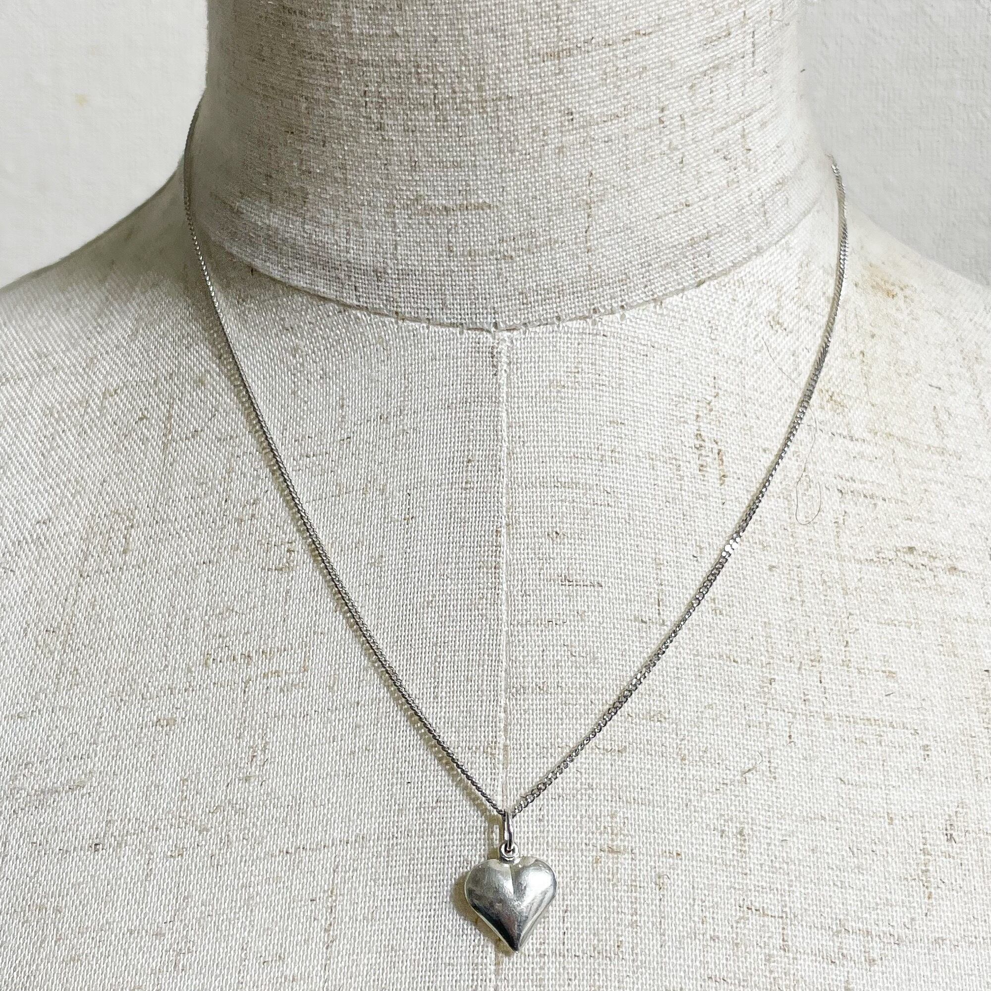925シルバーのヴィンテージパフィーハートペンダントネックレスです。