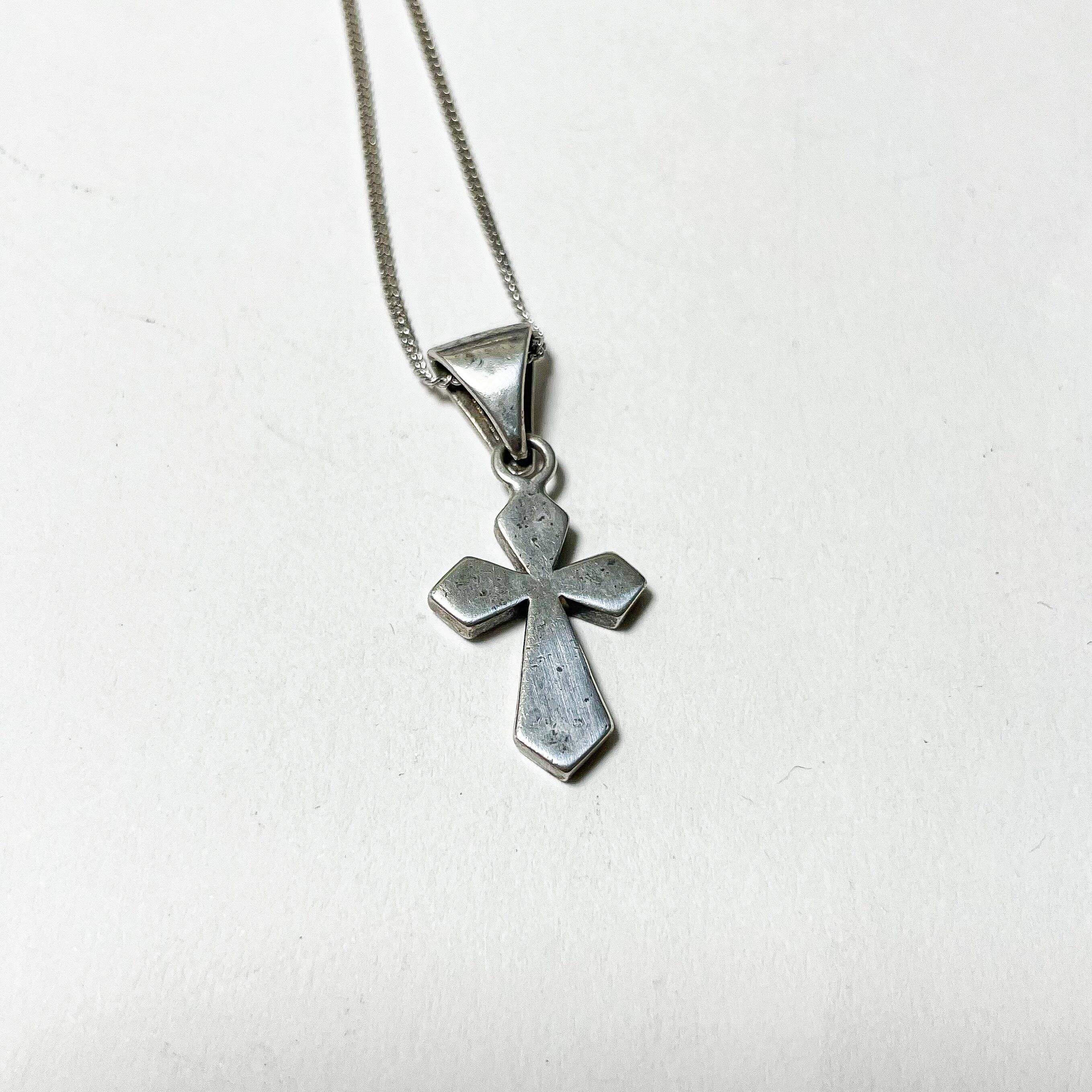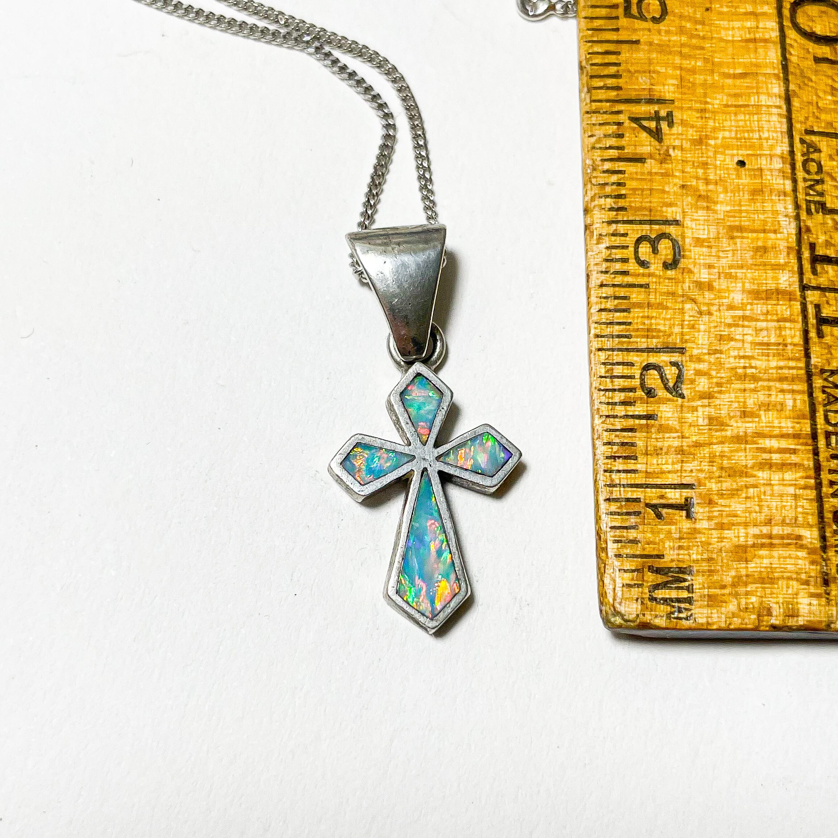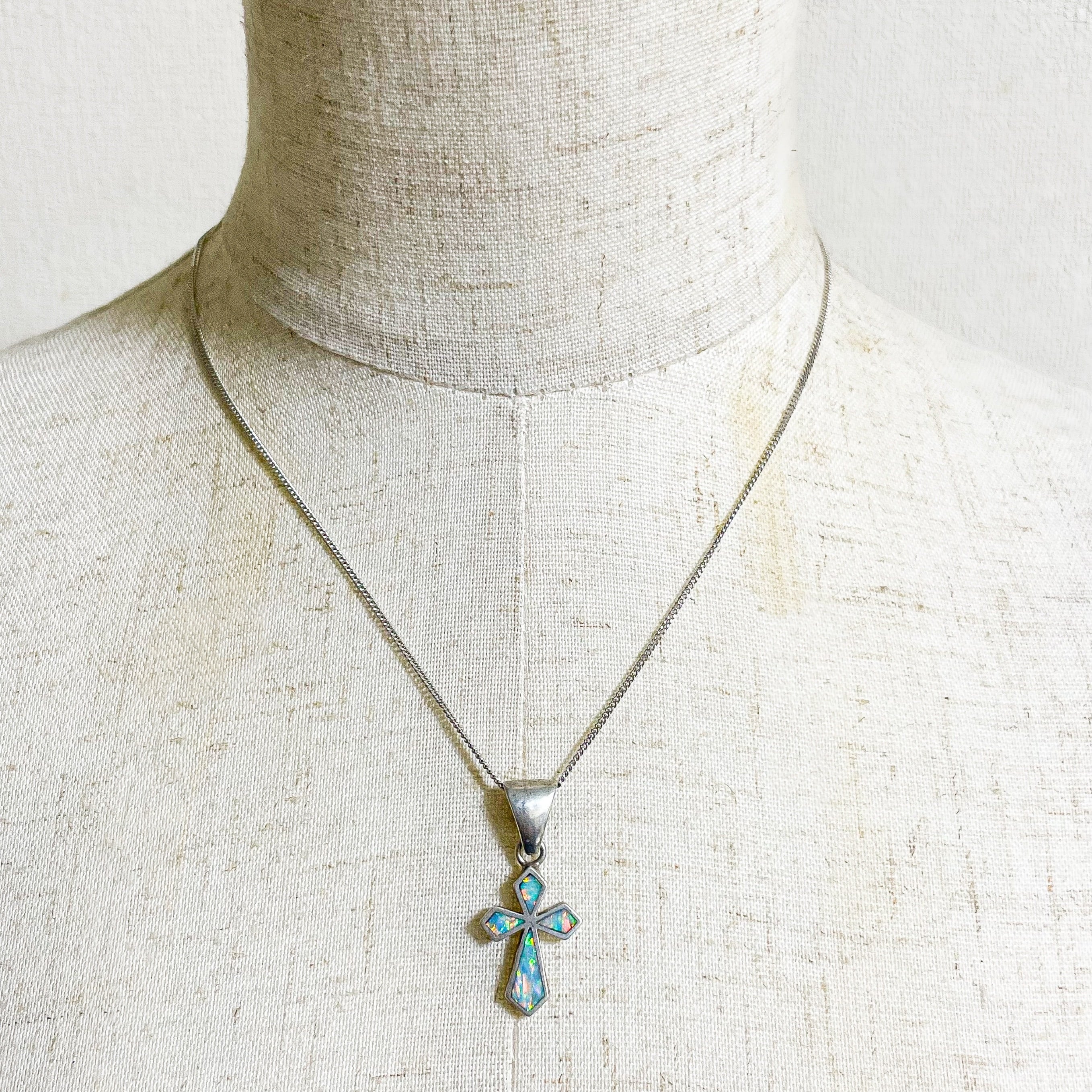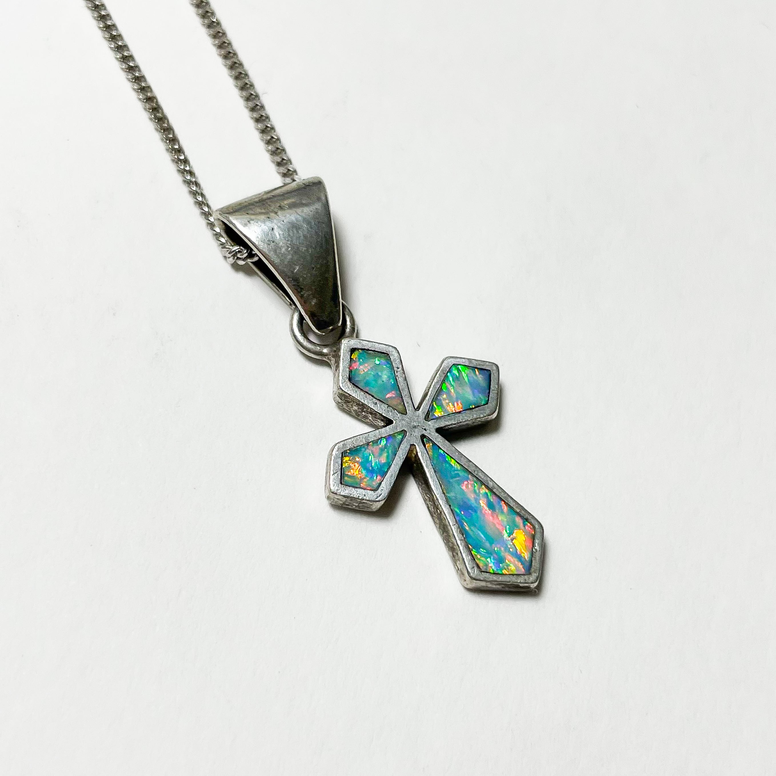 925シルバーにオパールがインレイされたクロスモチーフのシルバーペンダントネックレスです。